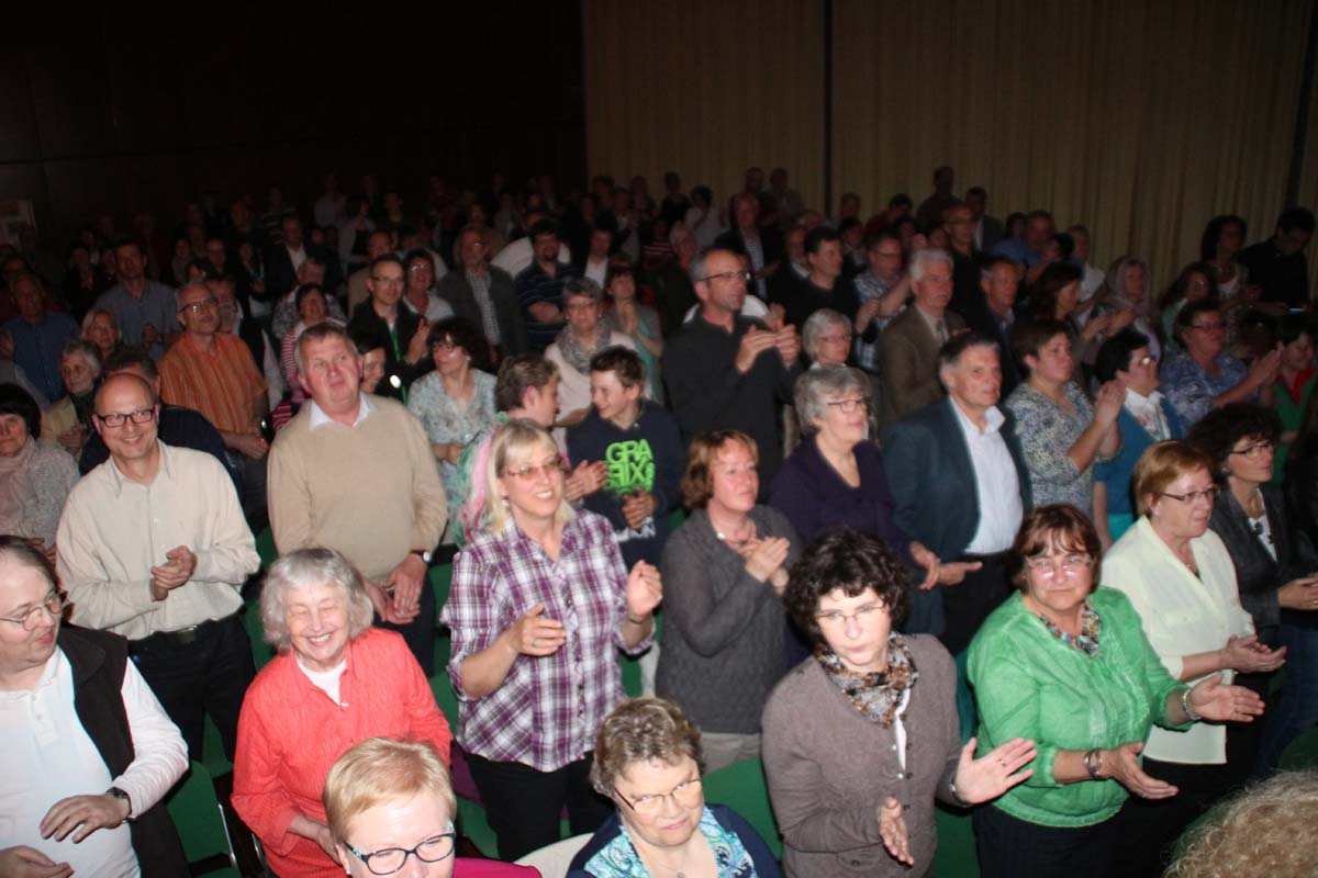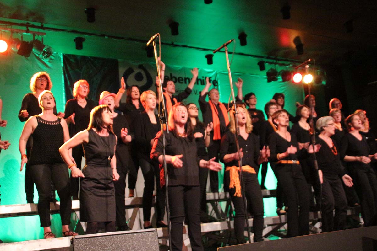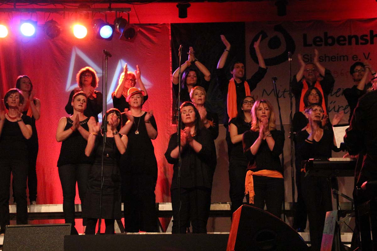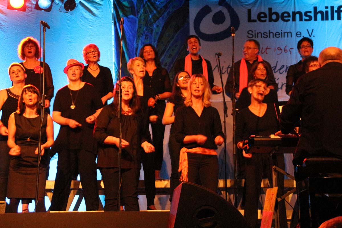 (cr) Einen besseren Abschluss für die Jubiläumsfeier der Lebenshilfe Sinsheim zum 50 jährigen Bestehen hätte man nicht finden können. Stimmgewaltig und vielfältig präsentierte sich der moderne Chor aus Schwaigern. Eine Benefizkonzert ist einfach Ehrensache. Dies spürte man auch bereits vom ersten Lied mit welcher Freude und welchem Spass die Akteure auf der Bühne der Stadthalle agierten. An diesem Abend gab es keine verstaubten Chorweisen, sondern nur Pop- und Rockgesang vom Feinsten. So waren dann auch alle so richtig aus dem Häuschen und tanzten sogar mit ihrem Rollstuhl vor der Bühne. Auch bei den Mitmachaktionen war das Publikum sofort mit dabei. Ein so tolles Konzert hatte die Lebenshilfe Sinsheim sich so richtig verdient. Ein riesen Dank an Power of Voices.