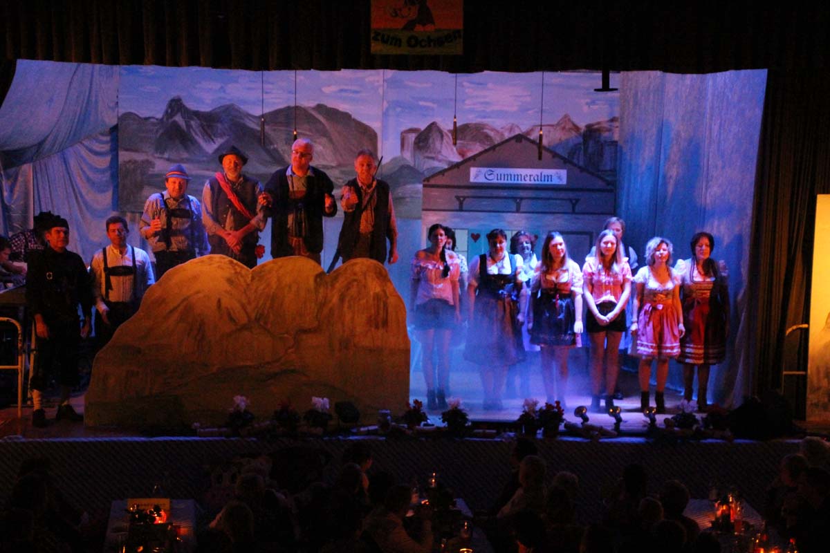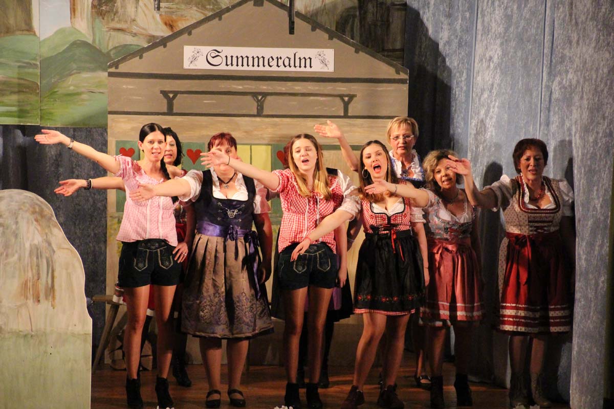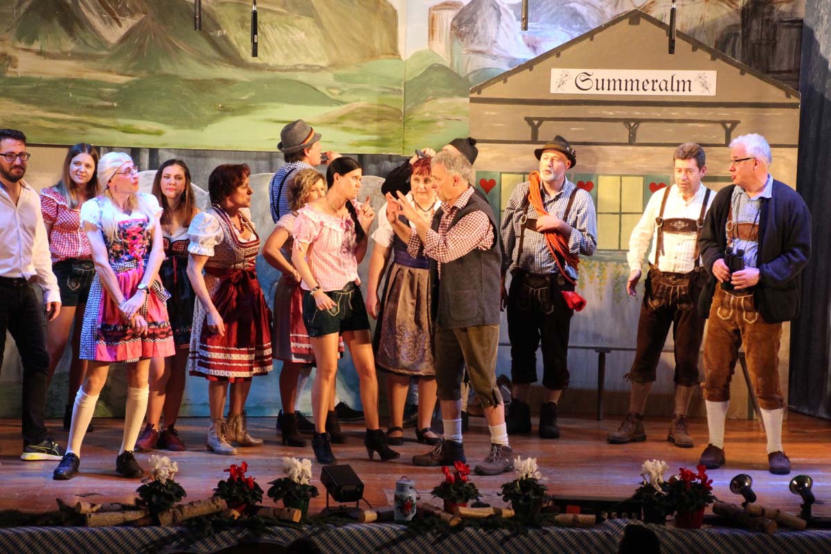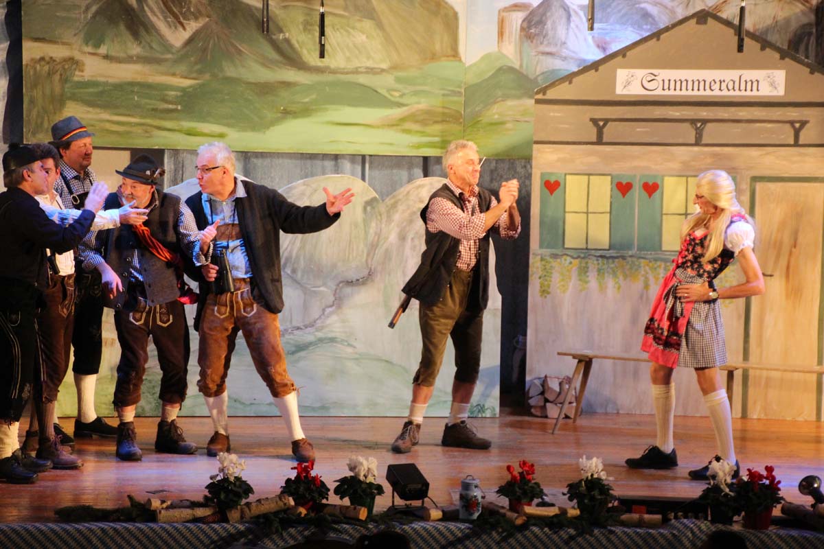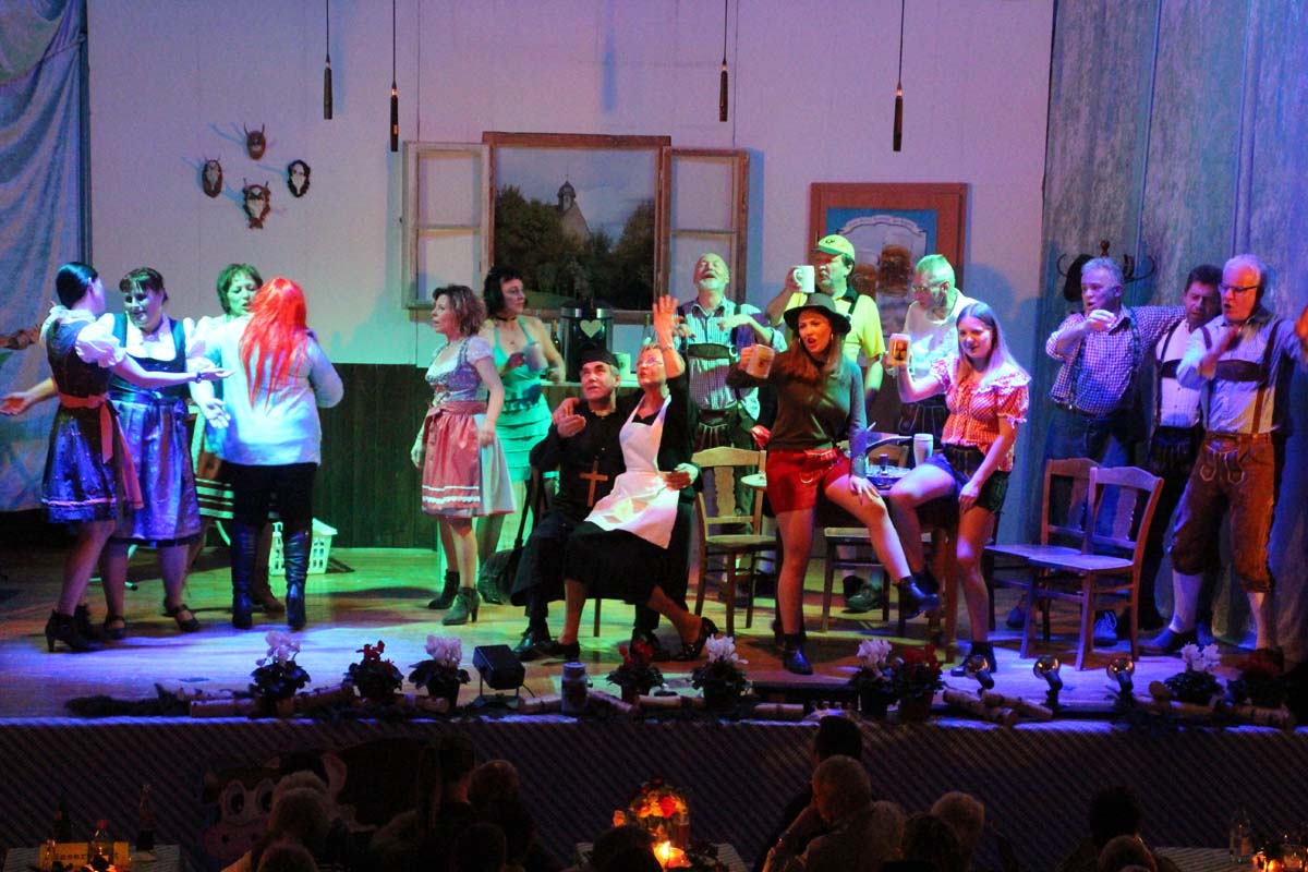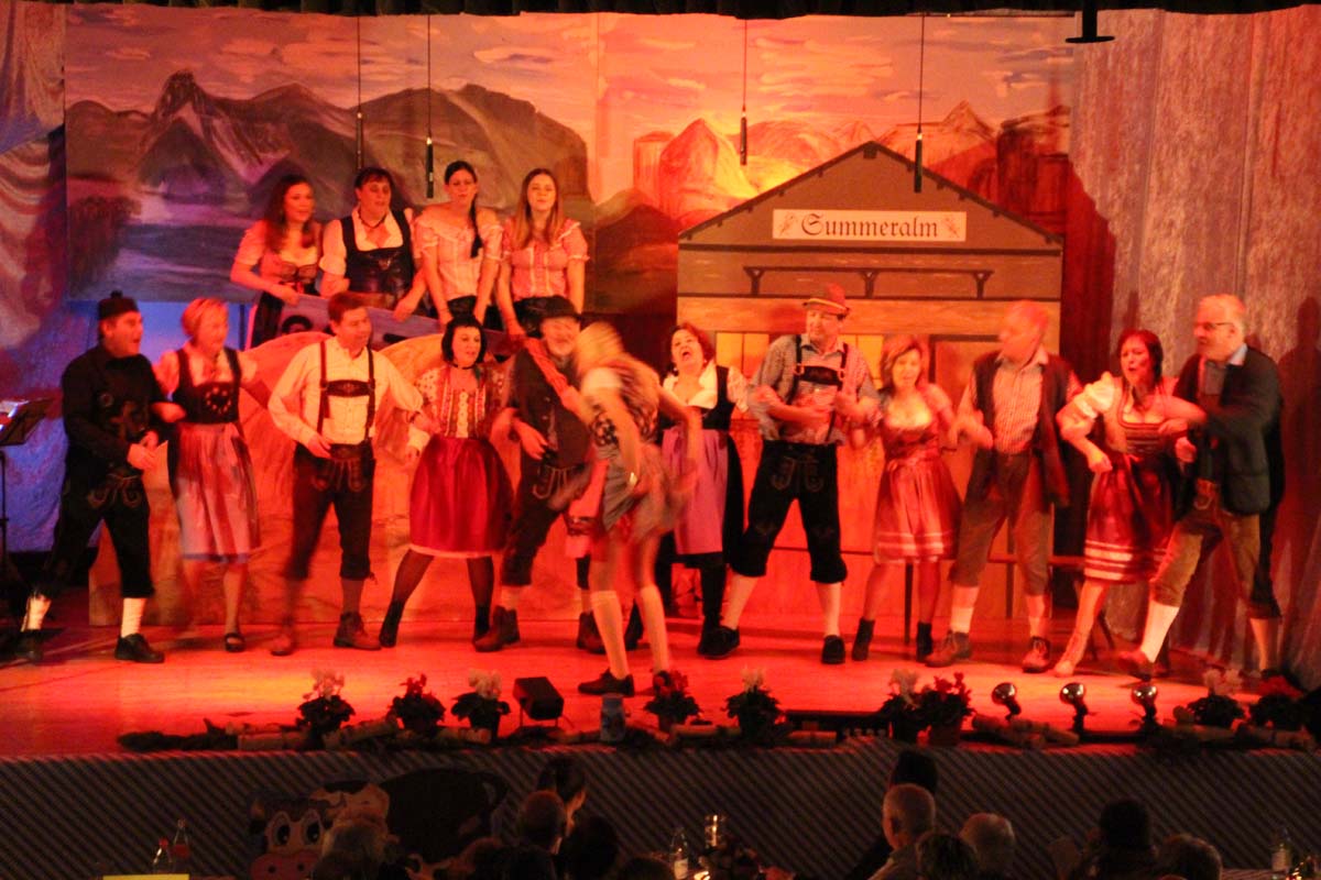 (cr) Der Sängerkranz 1862 Weiler e.V. glänzte mit seiner äusserst unterhaltsamen Musical Darbietung in der Alten Kelter in Weiler. Sein gemischter Basalt Chor war wieder einmal grosse Klasse. „Sie isch widder do!“ ist eine gelungene Mischung aus Mundart Theater und Musical. Nach sechs Jahren ist die Gailtalerin wieder in Weiler und wirbelt so die ganze Dorfgemeinschaft durcheinander. Das ganze wurde gespickt mit vielen bekannten Schlagern. Die Musik kommt natürlich nicht von der Konserve sondern wird live gespielt. Die Rollen waren wieder bestens verteilt und die Gailtalerin ist einfach der Hingucker schlechthin. Auch an einem fantastischen Bühnenbild hatte der Sängerkranz nicht gespart. Die Beleuchtung war nahezu perfekt und effektvoll. Lediglich der Ton hätte etwas besser sein können, aber das lag vielleicht auch an meinem Platz auf der Empore. Yvonne Grosskurth hat sich für diese Aufführung wieder viel einfallen lassen. Sie hat einfach immer ein gutes Händchen für den Sängerkranz 1862 Weiler bei der Inszenierung der Stücke.