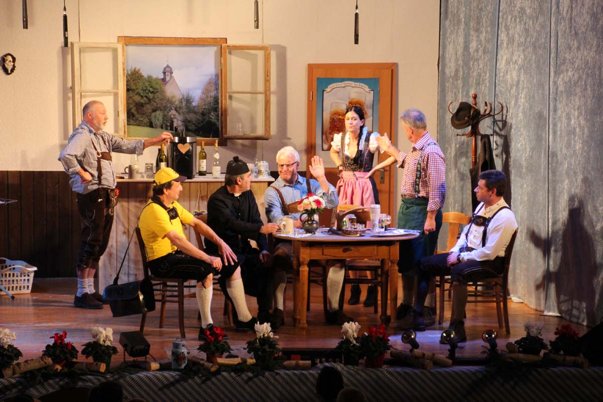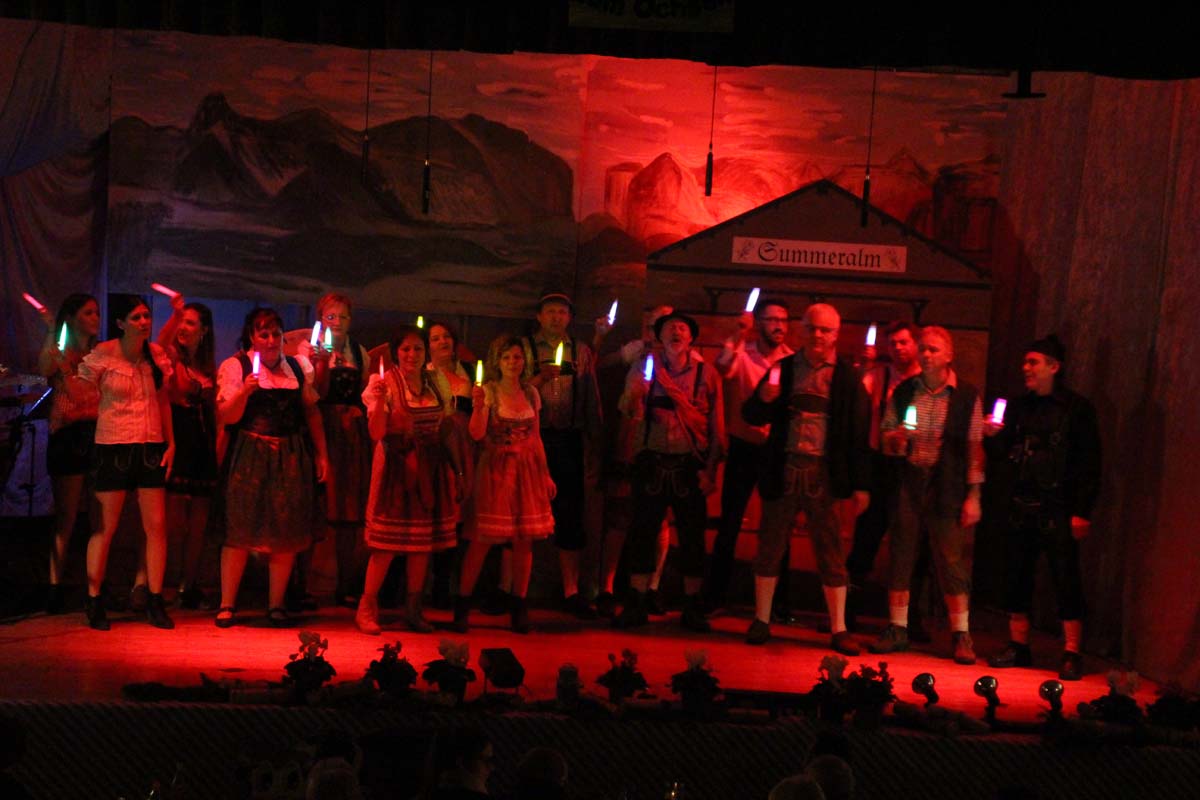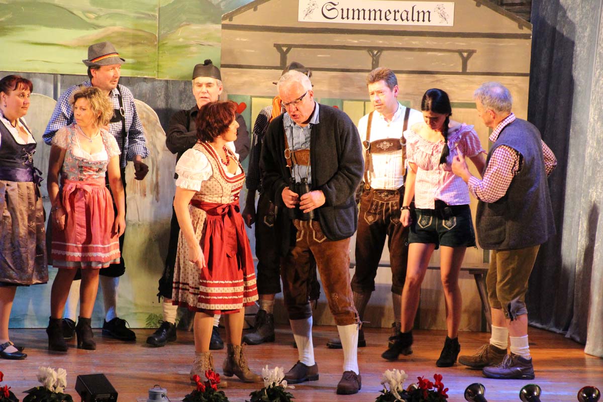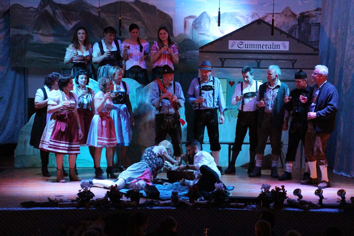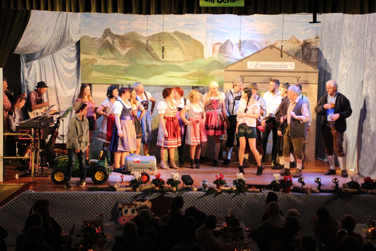 (cr) Der Sängerkranz 1862 Weiler e.V. glänzte mit seiner äusserst unterhaltsamen Musical Darbietung in der Alten Kelter in Weiler. Sein gemischter Basalt Chor war wieder einmal grosse Klasse. „Sie isch widder do!“ ist eine gelungene Mischung aus Mundart Theater und Musical. Nach sechs Jahren ist die Gailtalerin wieder in Weiler und wirbelt so die ganze Dorfgemeinschaft durcheinander. Das ganze wurde gespickt mit vielen bekannten Schlagern. Die Musik kommt natürlich nicht von der Konserve sondern wird live gespielt. Die Rollen waren wieder bestens verteilt und die Gailtalerin ist einfach der Hingucker schlechthin. Auch an einem fantastischen Bühnenbild hatte der Sängerkranz nicht gespart. Die Beleuchtung war nahezu perfekt und effektvoll. Lediglich der Ton hätte etwas besser sein können, aber das lag vielleicht auch an meinem Platz auf der Empore. Yvonne Grosskurth hat sich für diese Aufführung wieder viel einfallen lassen. Sie hat einfach immer ein gutes Händchen für den Sängerkranz 1862 Weiler bei der Inszenierung der Stücke.