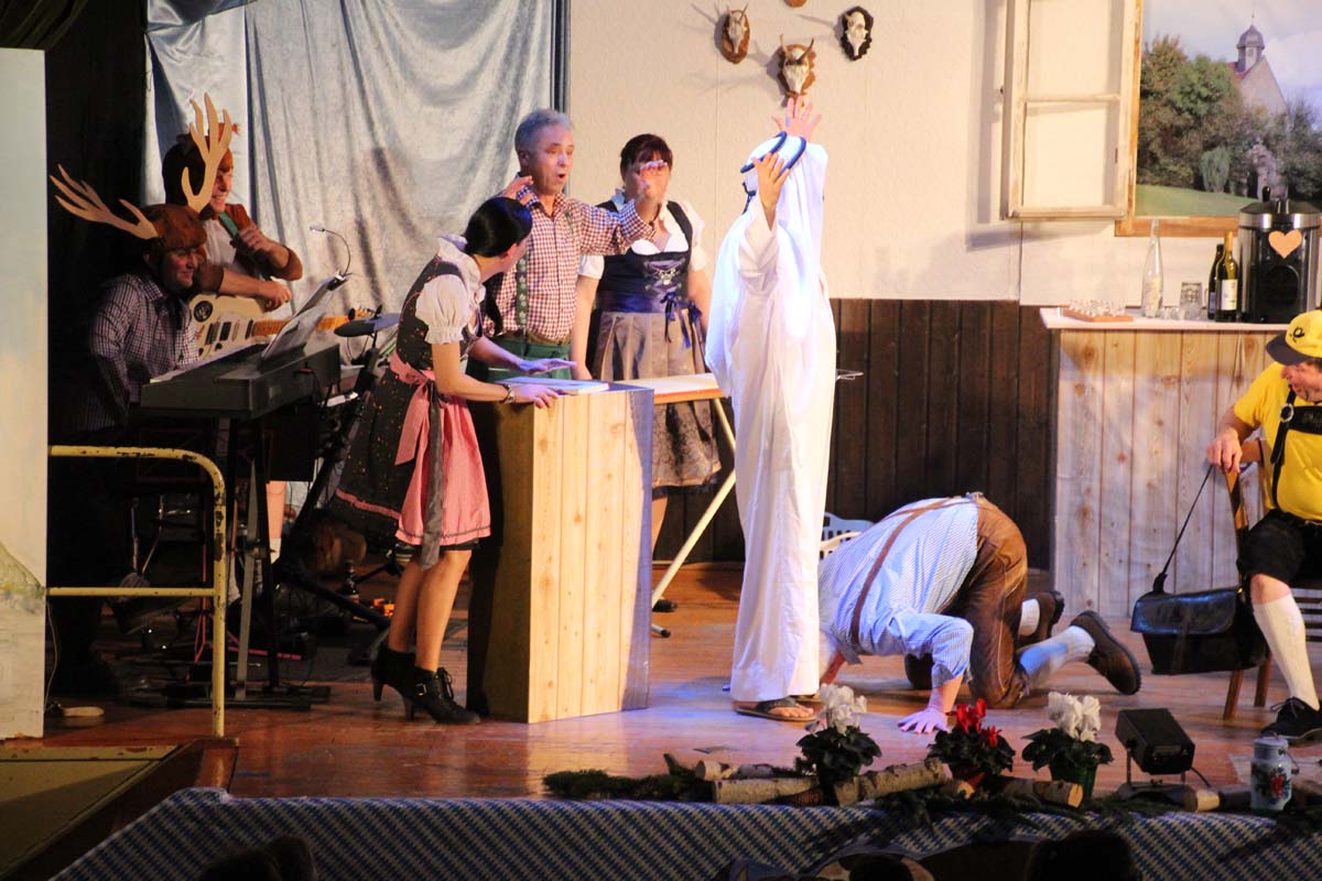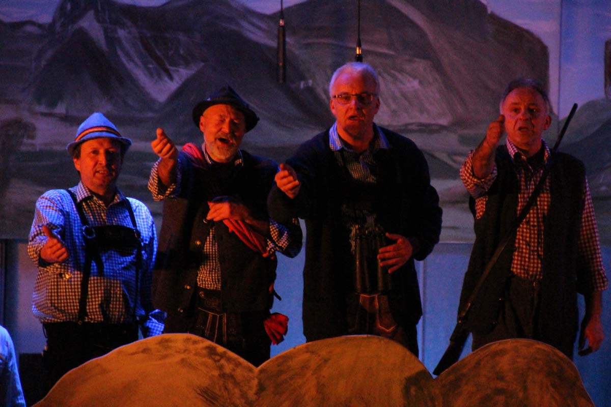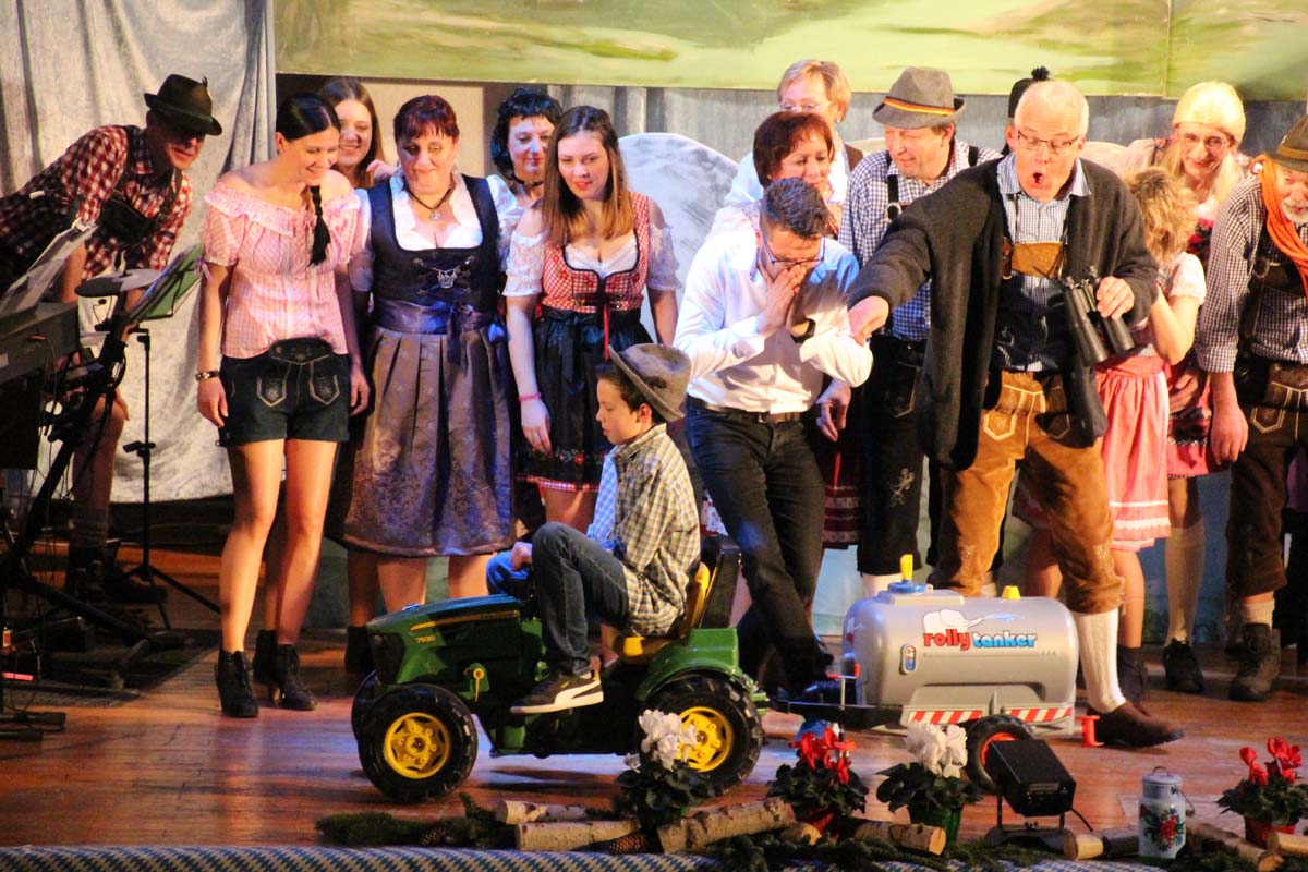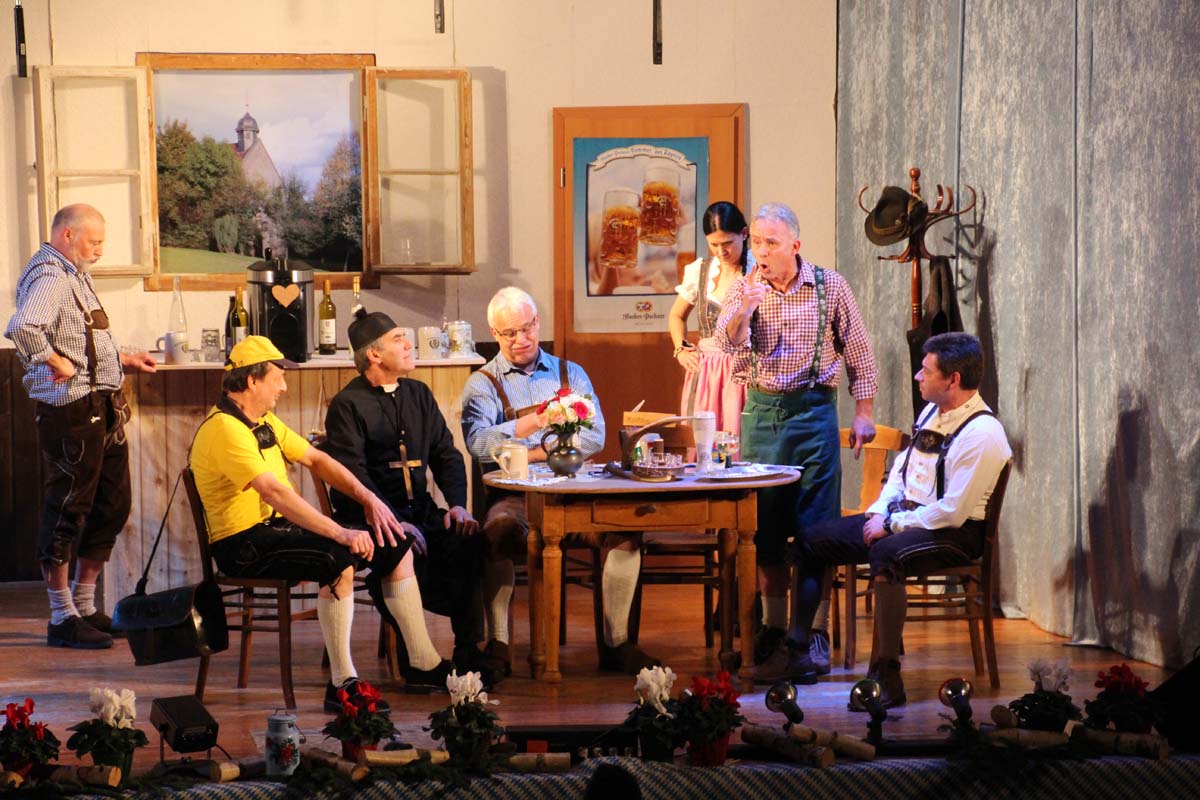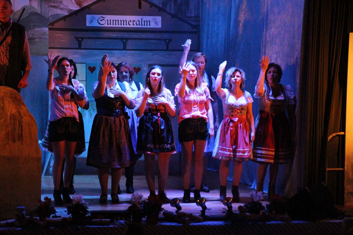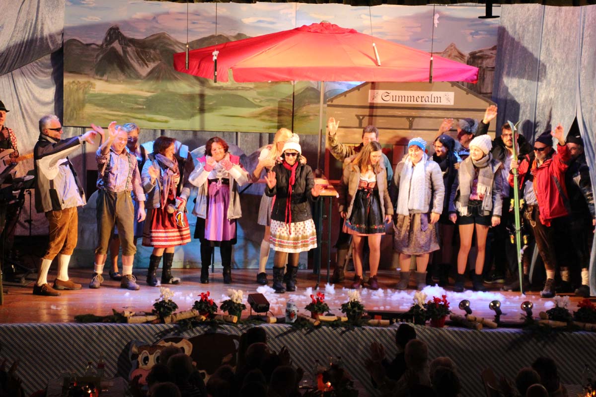 (cr) Der Sängerkranz 1862 Weiler e.V. glänzte mit seiner äusserst unterhaltsamen Musical Darbietung in der Alten Kelter in Weiler. Sein gemischter Basalt Chor war wieder einmal grosse Klasse. „Sie isch widder do!“ ist eine gelungene Mischung aus Mundart Theater und Musical. Nach sechs Jahren ist die Gailtalerin wieder in Weiler und wirbelt so die ganze Dorfgemeinschaft durcheinander. Das ganze wurde gespickt mit vielen bekannten Schlagern. Die Musik kommt natürlich nicht von der Konserve sondern wird live gespielt. Die Rollen waren wieder bestens verteilt und die Gailtalerin ist einfach der Hingucker schlechthin. Auch an einem fantastischen Bühnenbild hatte der Sängerkranz nicht gespart. Die Beleuchtung war nahezu perfekt und effektvoll. Lediglich der Ton hätte etwas besser sein können, aber das lag vielleicht auch an meinem Platz auf der Empore. Yvonne Grosskurth hat sich für diese Aufführung wieder viel einfallen lassen. Sie hat einfach immer ein gutes Händchen für den Sängerkranz 1862 Weiler bei der Inszenierung der Stücke.