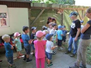 (zg) Am 12. Juli war es soweit. Im Zuge unseres Projekts „Waldtiere“ fuhren wir mit Bus und Bahn nach Bad Friedrichshall, um dort die Greifvogelpflegestation zu besuchen. Schon die Fahrt dorthin war für die Kinder sehr spannend. Nach einem kurzen Fußmarsch hatten wir die Greifvogelpflegestation erreicht. Dort wurden wir von Susi schon erwartet und herzlich begrüßt. Susi hat uns sehr viel über Greifvögel und Eulen erzählt und uns die Pflegestation gezeigt. Die Vögel und Eulen die momentan dort leben sind verletzte oder kranke Tiere, oder Jungtiere die aus ihrem Horst gefallen sind. Nachdem sie wieder gesund gepflegt wurden, dürfen sie wieder zurück in die Freiheit.