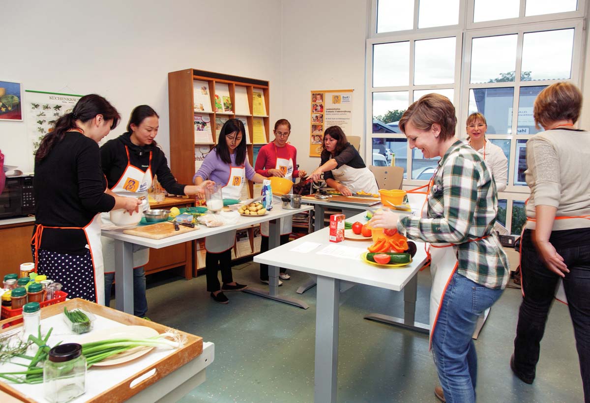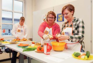 Ein weiterer Baustein ist die Zertifizierung für Kitas für ihre Leistungen zur Er-nährungsbildung, die ebenfalls im Rahmen von BeKi angeboten wird und im Rhein-Neckar-Kreis mit inzwischen 24 zertifizierten Einrichtungen gute Reso-nanz erfährt. Gleichfalls sehr interessant ist das Programm „Blickpunkt Ernährung“. Hier bekommen Verbraucher Entscheidungshilfen für ihren Ernährungsalltag einschließlich der Zusammenstellung ihres Speiseplanes an die Hand und erlernen praktische Fertigkeiten im Umgang mit Lebensmitteln. Im Vordergrund steht die Praxis, also „ran an die Töpfe“! Dabei erfahren die Teilnehmer mehr über die Herkunft der Lebensmittel und Qualitätsmerkmale, die landwirtschaftliche Praxis und auf was beim Einkauf und der Zubereitung zu achten ist – ganz nach dem Motto: vom Acker bis zum Teller Alltagskompetenz pur! Ein wichtiges Credo bei der Arbeit des Referats FORUM Ernährung ist dabei, dass die Angebote ohne den berühmten erhobenen Zeigefinger auskommen.