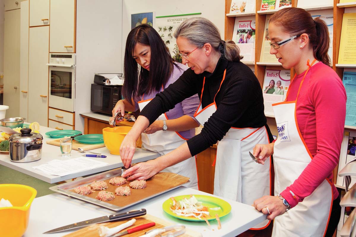 „Ausgewogenes Essen und Trinken bildet die Basis eines gesundheitsförderli-chen Lebensstils – von Anfang an“, weiß Uschi Schneider und erklärt, warum das FORUM Ernährung den Schwerpunkt der Aktivitäten auf die bewusste Kinderernährung, kurz BeKi, legt. Freiberufliche Mitarbeiterinnen, die BeKi-Referentinnen, informieren unter dem Motto „den Ess-Alltag gestalten – von Anfang an“ in Tageseinrichtungen für Kinder, in Erwachsenenbildungseinrichtungen, in Kleinkindgruppen und in Schulen über viele Fragen rund ums Essen und Trinken und unterstützen das FORUM Ernährung dabei auch in seinem Schulungsprogramm. „Im Mittelpunkt aller Maßnahmen stehen die Freude am Essen, die Lust am Selbermachen und der Aufbau von Vertrauen in Lebensmittel“, ergänzt Schneiders Kollegin Gisela Amaya. BeKi stellt außerdem umfangreiches Informations- und Arbeitsmaterial für Eltern und Erziehungskräfte zur Verfügung.