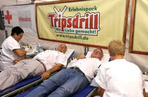 Das Deutsche Rote Kreuz (DRK) ruft jedes Jahr zu Beginn der Sommerferien zur Blutspende auf, um Engpässe mit der Versorgung von Spenderblut während der Ferienzeit zu vermeiden. Die DRK-Blutspende vor den Toren des Erlebnispark Tripsdrill fand nun bereits zum 19. Mal in Folge statt. Mit 3.942 Spendewilligen und 3.469 Spendern hat sie sich zur aktuell größten Aktion ihrer Art in ganz Deutschland entwickelt. Seit 2001 kommt die DRK-Blutspende in Tripsdrill auf über 60.000 Spendewillige und fast 55.000 Spender.