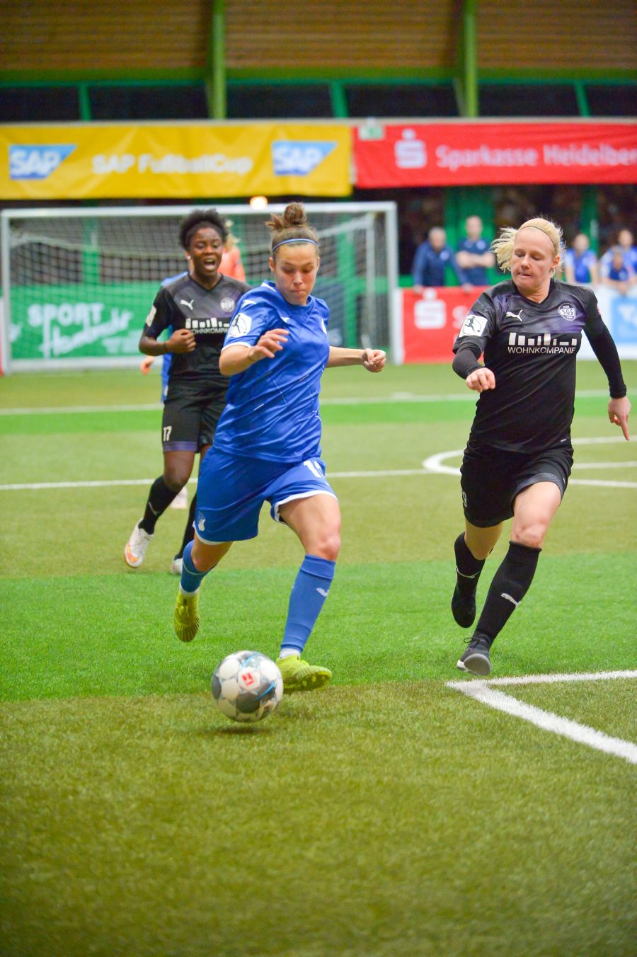 Am Sonntag zeigten die sechs Vertretungen der Bundesliga ihre Stärke. Die drei Qualifikanten und der FC Zürich als Gast aus der Schweiz hatten das Nachsehen und belegten die letzten beiden Plätze in der Vorrunde. Auch Vorjahressieger Sand schied als Gruppendritter aus. Wer die Gruppe B mit Hoffenheim, Essen und Sand als die stärkere eingeschätzt hatte, sollte Recht behalten. Nachdem Hoffenheim im letzten Spiel der Vorrunde mit 3:2 gegen Essen gewann, sahen sie sich im Finale wieder. Im Spiel um Platz drei setzte sich Frankfurt mit 3:1 gegen Bayer Leverkusen durch.