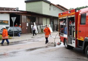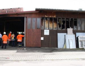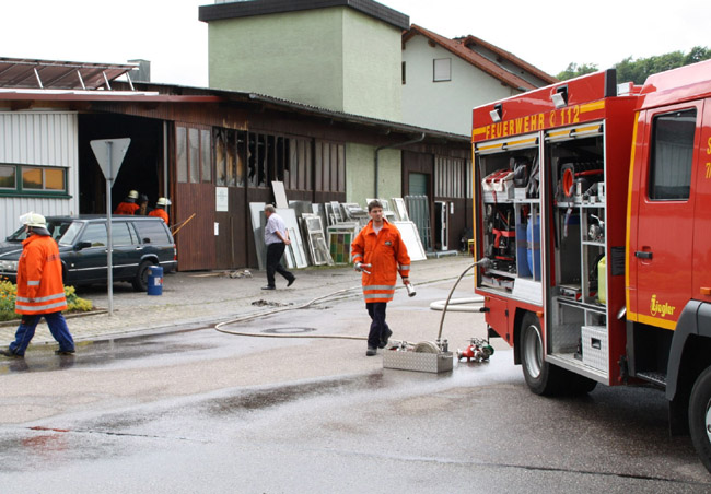 Rund 60 Feuerwehrmänner aus der Sinsheimer Region sind derzeit damit beschäftigt, den Brand einer Werkstatt in der Breiten Straße zu löschen. Durch die extrem starke Rauchentwicklung können die Arbeiten nur mit schwerem Atemschutz durchgeführt werden. Gegen 11 Uhr war das Feuer aus bislang unbekannten Gründen in einer Schreinerei ausgebrochen und hatte schnell auf die gesamte Werkstatt übergegriffen.