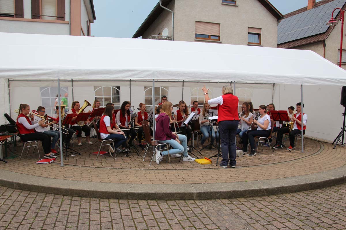 (cr) Eschelbach war im Wetterglück, denn rund um Eschelbach liessen tiefe dunkle schwarze Wolken viel Wasser ab. Nur das Brunnenfest in Eschelbach trotzte diesem Unwetter. Und so konnte man fast ganz trocken der Musik des Musikvereins der Freunde aus Hilsbach lauschen, gefolgt vom Männer Gesangsverein Eschelbach. Besonders erfreut hat dann das Jugendorchester des Musikvereins Eschelbach. Schön zu sehen das die Jugend hier noch grosses Interesse an der Musik zeigt.