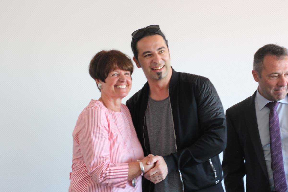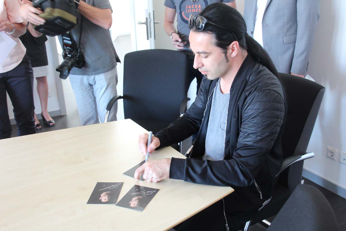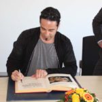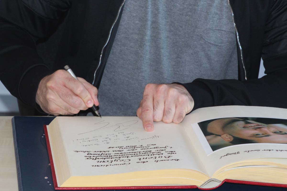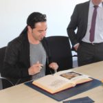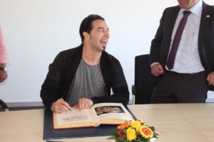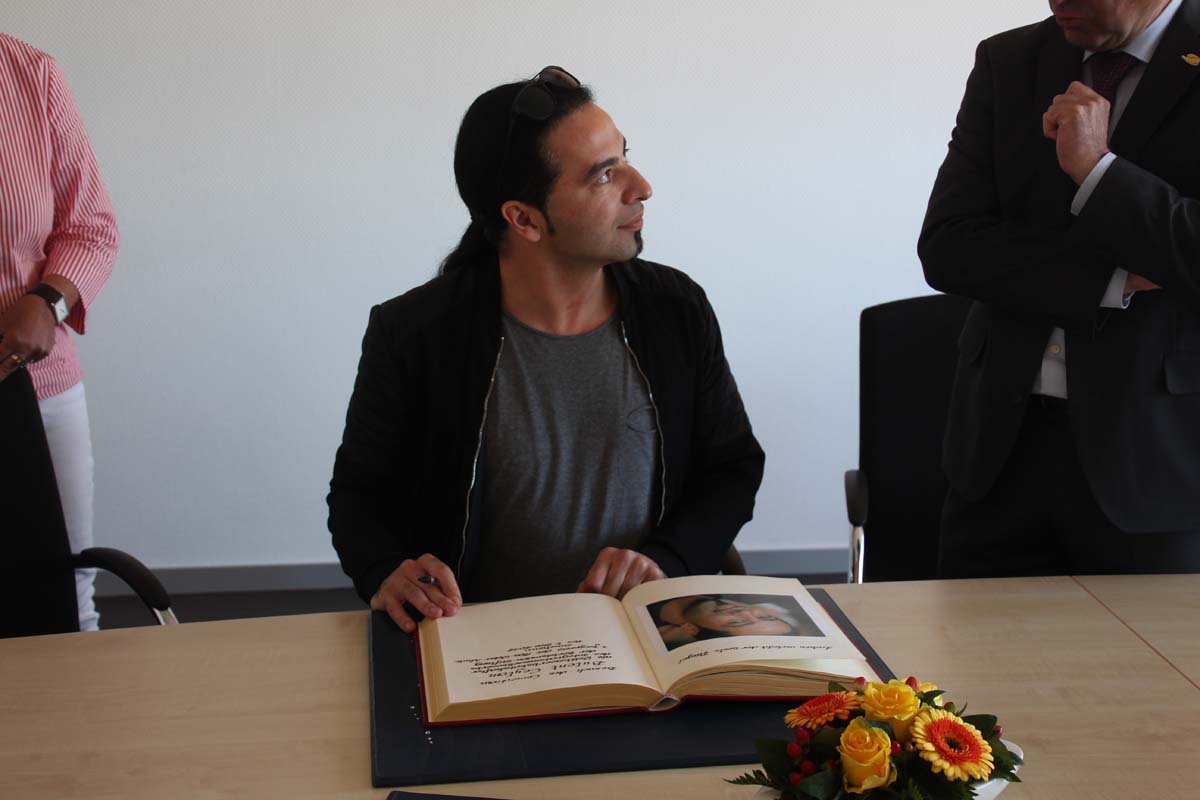 (cr) Normalerweise erlebt man Bülent Ceylan nur auf den grossen Bühnen in Deutschland. Doch bei seinem Besuch im Sinsheimer Rathaus lernte man ihn mal von seiner ganz privaten Seite kennen. Er ist bodenständig geblieben, eher etwas zurückhaltend begrüsste er die Gäste im Rathaus zum Eintrag ins goldene Buch der Stadt. Doch zwischen ihm und Ali J. Albrecht stimmte sofort die Chemie. Und so wurde aus dem Eintrag in das Goldene Buch ein ganz amüsanter Event. Trotz Termindruck erfüllte ere auch gerne die Autogrammwünsche der städischen Angestellten. Besonders bemerkenswert ist auch seine soziale Ader. Bülent Ceylan ist einfach der geblieben der er ist.