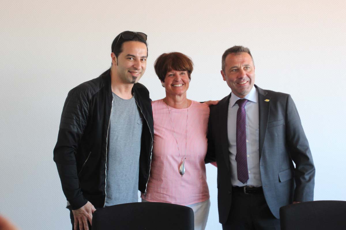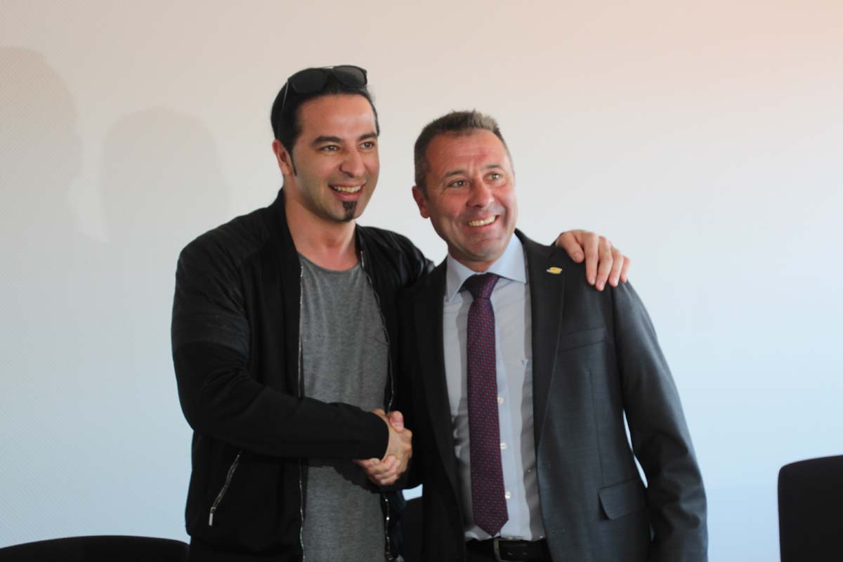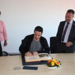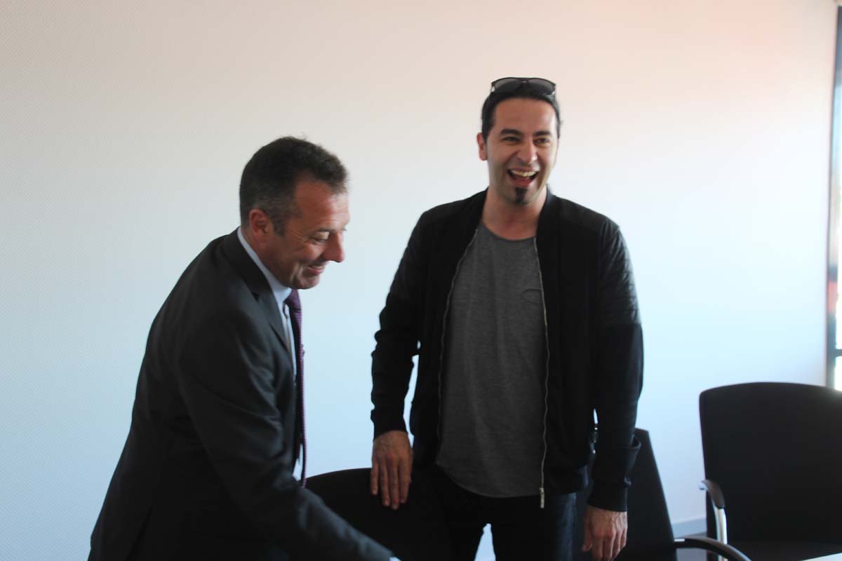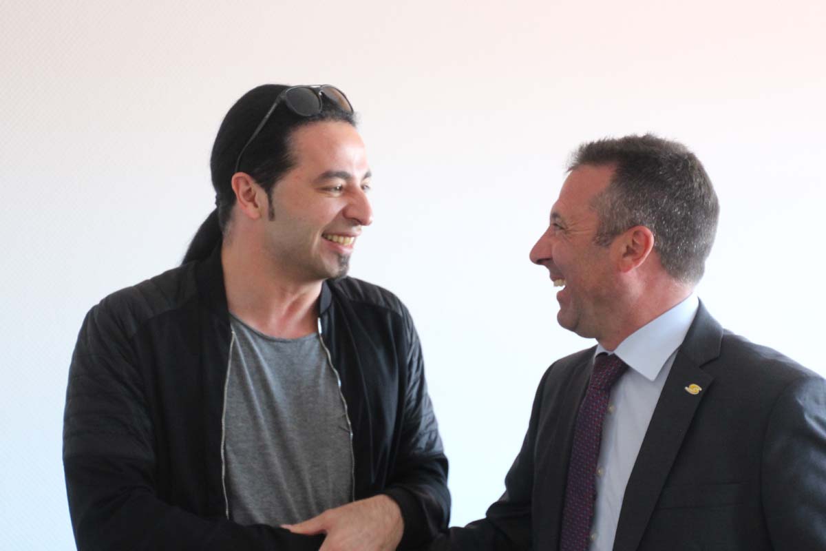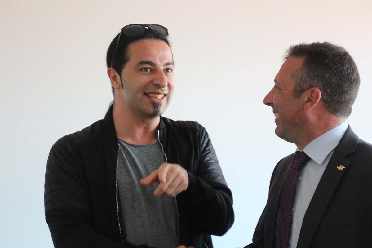 (cr) Normalerweise erlebt man Bülent Ceylan nur auf den grossen Bühnen in Deutschland. Doch bei seinem Besuch im Sinsheimer Rathaus lernte man ihn mal von seiner ganz privaten Seite kennen. Er ist bodenständig geblieben, eher etwas zurückhaltend begrüsste er die Gäste im Rathaus zum Eintrag ins goldene Buch der Stadt. Doch zwischen ihm und Ali J. Albrecht stimmte sofort die Chemie. Und so wurde aus dem Eintrag in das Goldene Buch ein ganz amüsanter Event. Trotz Termindruck erfüllte ere auch gerne die Autogrammwünsche der städischen Angestellten. Besonders bemerkenswert ist auch seine soziale Ader. Bülent Ceylan ist einfach der geblieben der er ist.