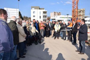 (zg) Sehr erfreut war Oberbürgermeister Jörg Albrecht über das große Interesse an einer ersten Baustellenführung für die Bürger durch das Sanierungsgebiet Wiesental/Innenstadt-Ost. Rund zwei Stunden erläuterten Jörg Albrecht und Baudezernent Tobias Schutz über hundert Teilnehmern die Maßnahmen, die bereits begonnen wurden und solche, die demnächst angegangen werden. „Wir hoffen, dass die Sanierung der Stadthalle bis 2020 abgeschlossen ist“, gab sich Albrecht vorsichtig optimistisch. Er stellte aber auch klar, dass nur eine Sanierung und kein Abriss des Bauwerks die Bedingung für eine Förderung war, die letztendlich genehmigt wurde und zu einer Ersparnis von rund fünf Millionen Euro beigetragen hat.