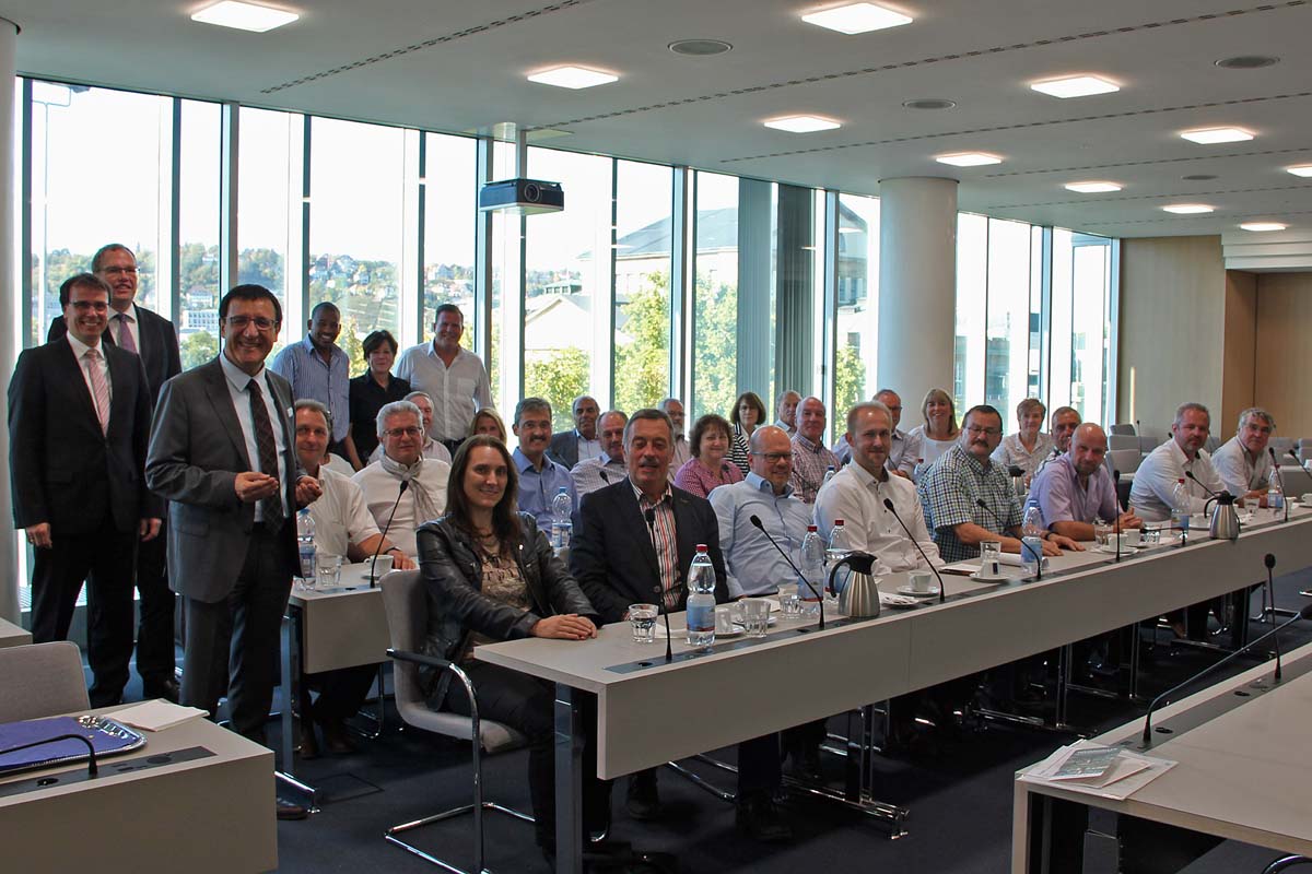 Im Anschluss an den Besuch der Plenarsitzung stand, nach einer Begrüßung und einem kurzen Gespräch mit Prof. Dr. Wolfgang Reinhart MdL, dem Fraktionsvorsitzenden der CDU-Landtagsfraktion, ein Austausch mit dem Staatssekretär im Kultusministerium, Volker Schebesta (CDU). Dieser betonte in der Diskussion, wie wichtig der Landesregierung eine ausreichende Lehrerversorgung an den Schulen sei: „Wir sind das erste Mal in der Situation, dass wir zwar genügend Geld und Stellen im Haushalt eingestellt aber nicht genügend Lehrerinnen und Lehrer haben, um diese Stellen auch zu besetzen.“ Das gilt auch für Rektorinnen und Rektoren an kleinen Grundschulen. Hier hat Ministerin Dr. Eisenmann (CDU) ein Konzept zur Verbesserung vorgelegt, mit dem z.B. auch an Schulen zwischen 41 und 80 Schülern A13 für die Leitungsstelle bezahlt werden soll. Weitere Themen, die von den kommunalen Vertretern angebracht wurden, waren die Digitalisierung der Schulen oder die Förderung der Kleinkindbetreuung im Land. Hier konnte Schebesta auf einige zusätzliche Förderungen der Landesregierung verweisen: So wurden innerhalb von 10 Jahren die Fördermittel für die „Unter 3 Betreuung“ von ca. 100 Millionen auf über 1 Milliarden Euro pro Jahr angehoben, für die „Über 3 Betreuung“ wird der Zuschuss bis 2021 von ca. 500 Millionen ebenfalls auf über 1 Mrd. Euro angehoben. Für die Digitalisierung der Schulen werden extra 150 Millionen Euro in einem Landesförderprogramm zur Verfügung gestellt.