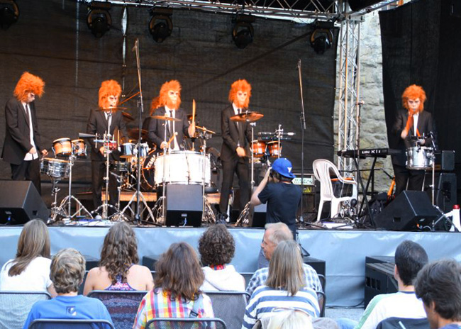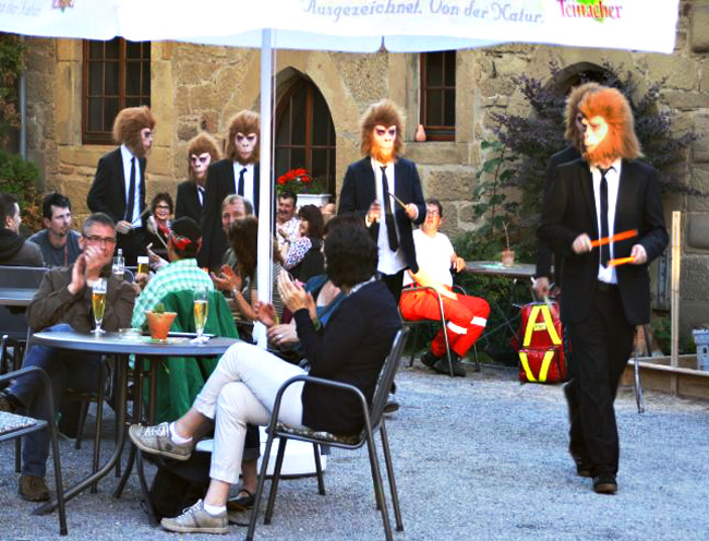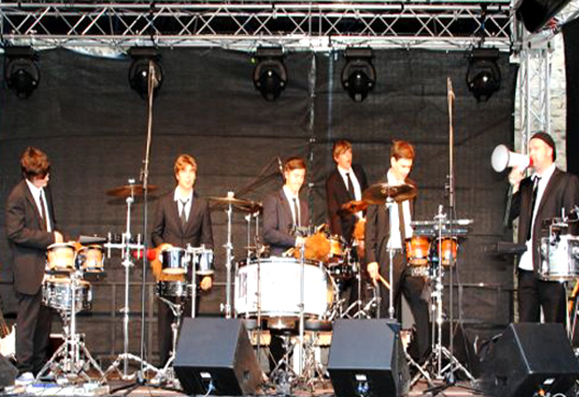 Die originelle Drumgroup um Drum-Coach Thomas Zimmermann wurde ihrem Ruf mit ihrer phantstischen Performance gerecht. Die sechs Jungs, eine schlagkräftige Truppe der Musikschule Sinsheim eröffnete den zweiten Tag des Steinsberg Festivals mit einer tollen Bühnen Show. Sie schafften es in 30 Minuten sich in die Herzen der Zuschauer zu trommeln. Diese Show war alles andere als „affig“, sondern eine Darbietung die dem Publikum noch lange im Gedächtnis und den Ohren bleiben wird. Diese Jungs haben es wirklich drauf.