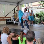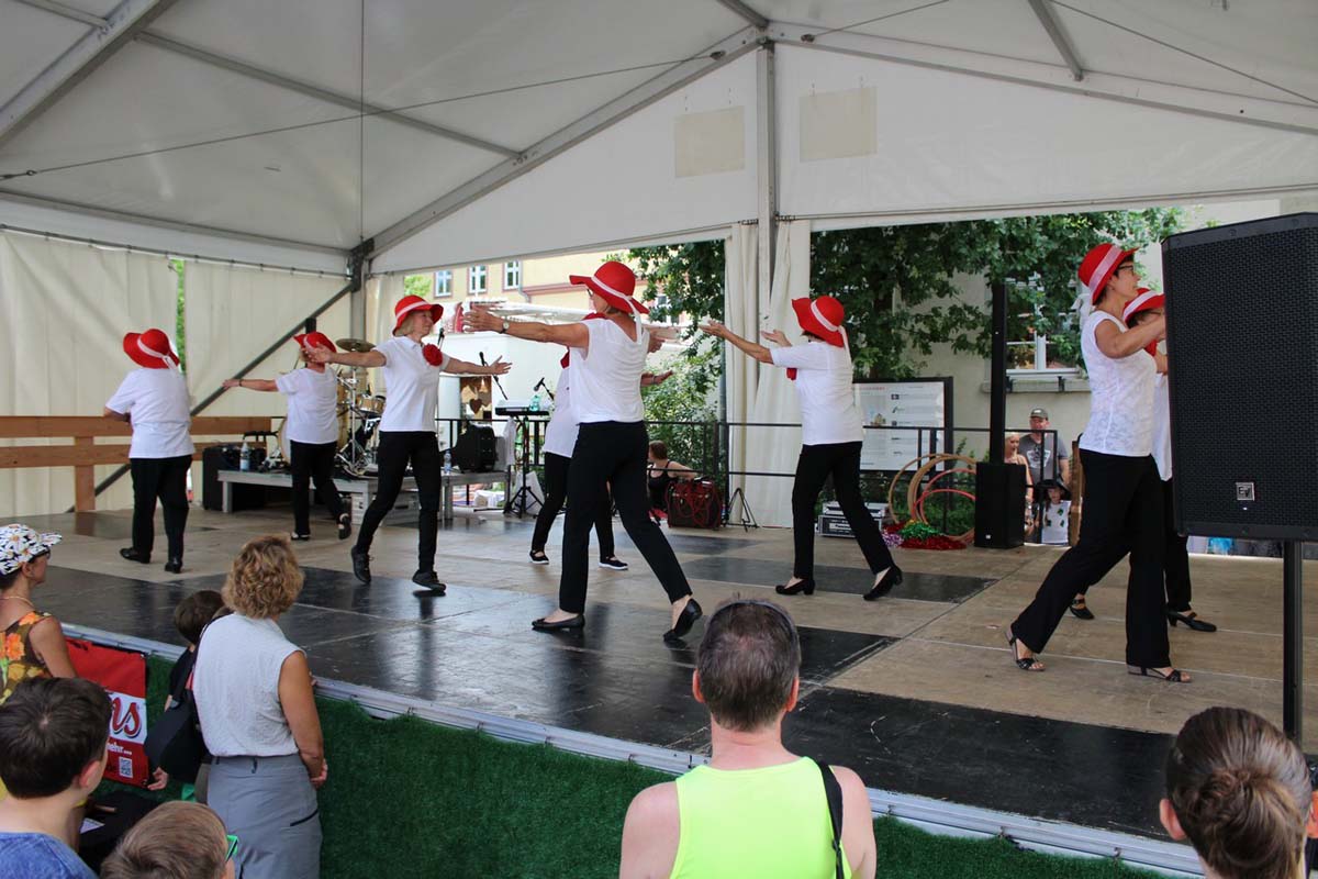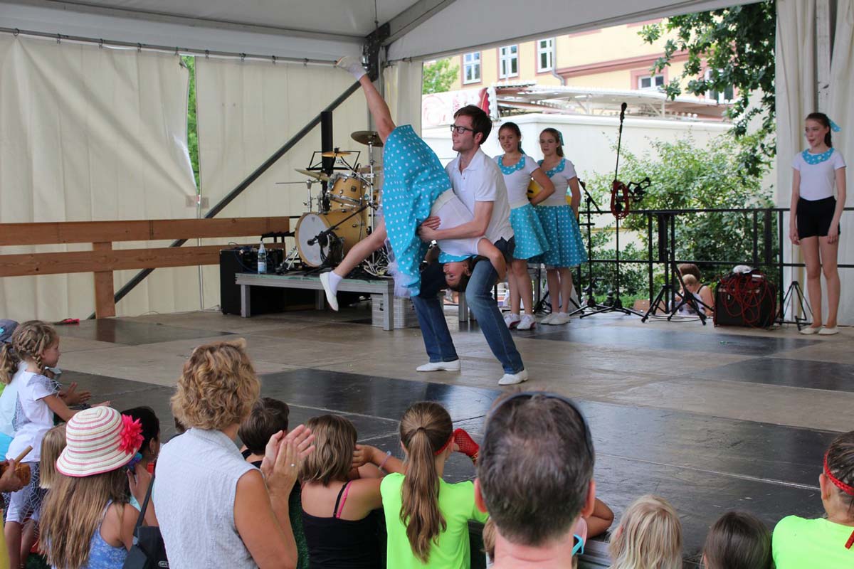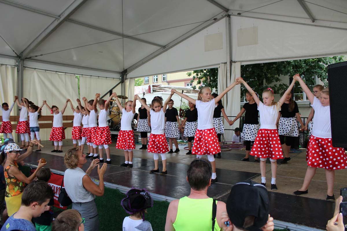 (zg) Der Tanzsportclub Rot-Gold Sinsheim präsentierte im Rahmen des Stadtfestes Neckarbischofsheim einen bunten Querschnitt durch sein Tanzangebot. Über eine Stunde Tanzprogramm unter der Leitung von Piti Lessmann gab es für die Zuschauer auf der grossen Bühne vor dem alten Rathaus. Tanzkinder aus Sinsheim und Waibstadt im Alter von 3 – 16 Jahren zeigten Kindertanzen als kleine Hexen oder Showdance mit dem „Trendspielzeug“ Fidget Spinner. Aus Sinsheim kam die Rock and Roll-Formation „Crazy Kicks“ mit flotter James Bond-Choreographie und die „Sterne des Orients“ mit Seidentuch-Präsentation. Das Neckarbischofsheimer Geschwisterpaar, Anastasia und Viktor Jäger, wirbelte im Turnieroutfit mit lateinamerikanischen Tänzen über die Bühne. Die Line Dancer „60 Plus“ aus Waibstadt präsentierten Ihren Sommerwalzer, Trotz Hitze und eigentlich „ 80 Plus“ zeigten Sie Freude und Tanzenergie auf der Bühne. Auch die Rollstuhltanzformation „Rhythm on wheels“ passte zu dem heissen Sommertag mit Ihrer Choreographie „Dschungel“. Die Rollstuhtänzer hatten Ihre Mühe mit den Unebenheiten der Bühne, meisterten dies aber mit Routine. Es war insgesamt ein abwechslungsreiches Nachmittagsprogramm, unterhaltsam moderiert von Andreas Lessmann.Das könnte Sie auch interessieren…