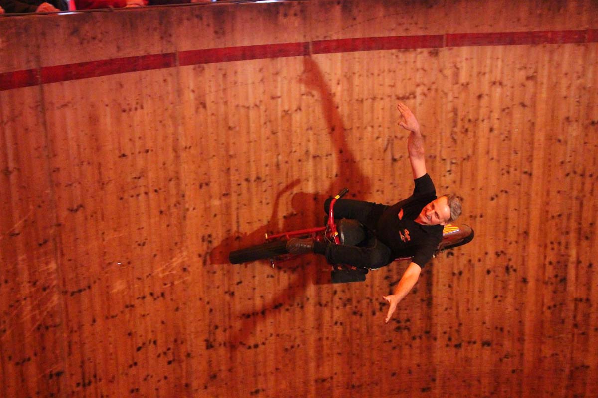 Beim diesjährigen Motorrad-Wochenende gilt es Abschied zu nehmen. Denn der Stammgast und Publikumsliebling Henny Kroeze dreht zum letzten Mal seine Runden im 1940 erbauten Holzbottich. Beinahe 20 Jahre lang begeisterte der Niederländer mit seiner traditionellen Indian Steilwandshow. Nun will er in den wohlverdienten Ruhestand gehen und somit 2018 ein letztes Mal den Museumsbesuchern seine waghalsigen Stunts auf einer 90 Jahre alten Indian vorzuführen.