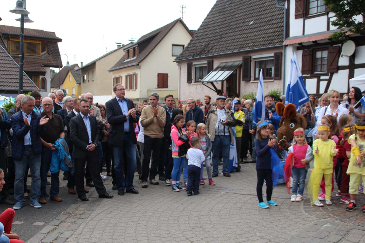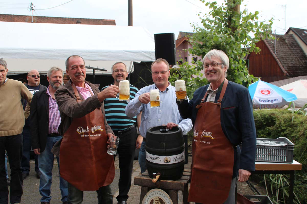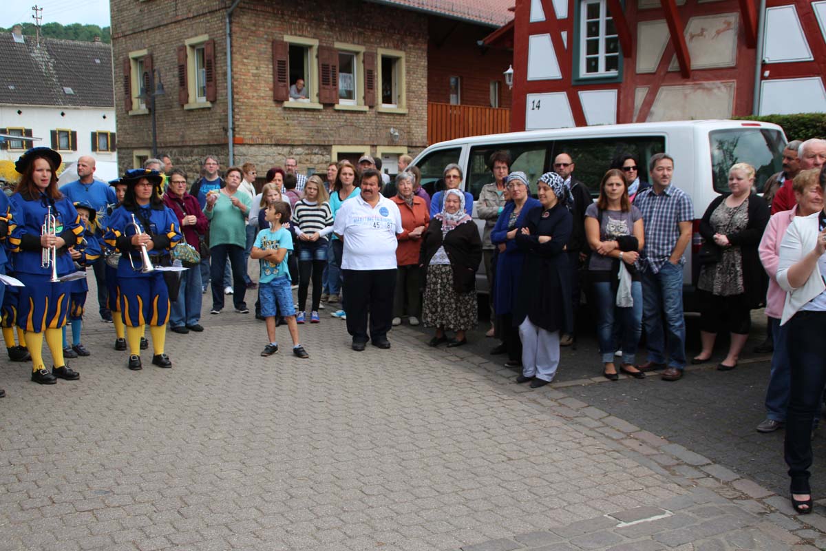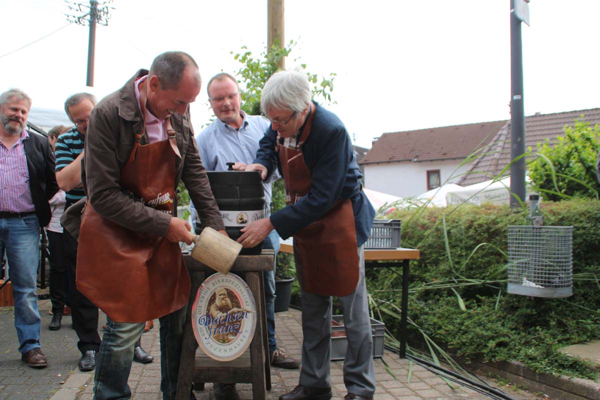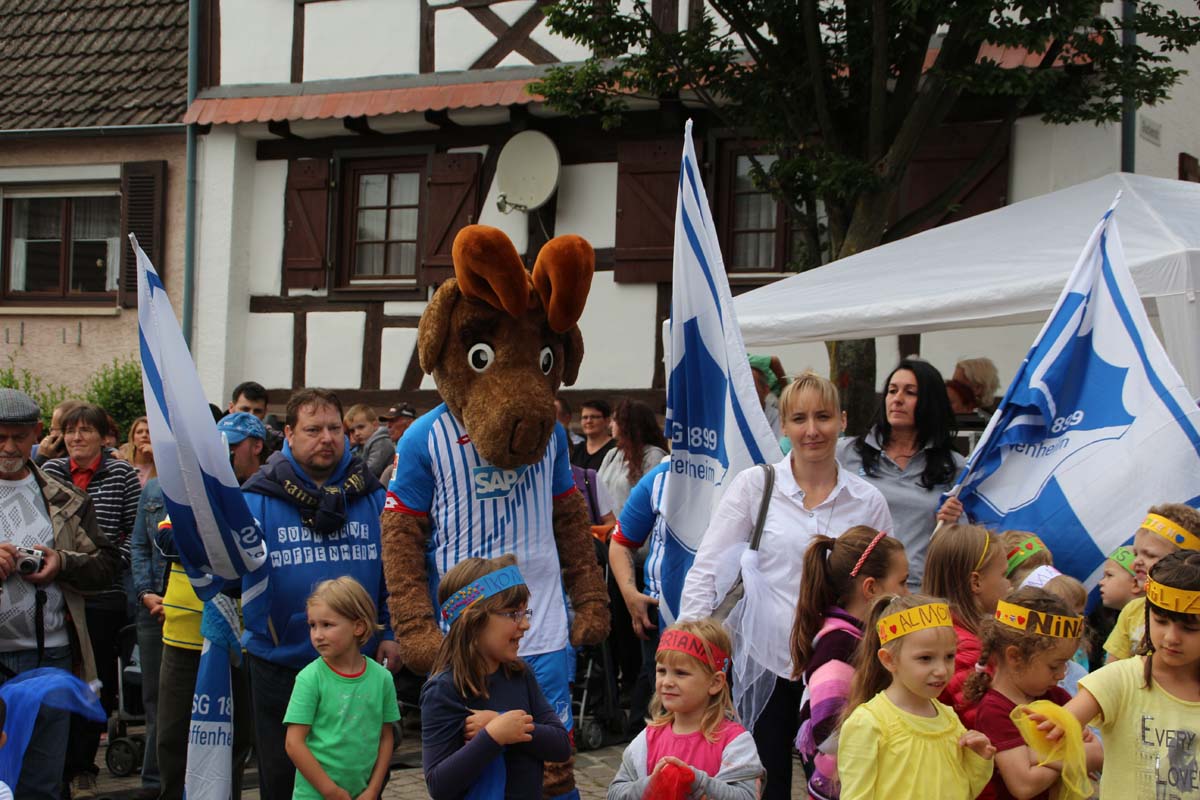 IMG_8753 (cr) Pünktlich um 17.00 Uhr zogen die Akteure zum Hoffenheimer Dorffest unter der musikalischen Begeleitung des Fanfarenzug Wiesenbach zur Begrüssung und zum Fassanstich ein. Da fehlte natürlich zur Begeisterung der Kinder auch Hoffi nicht. Mit einem Fässchen Freibier von Dachsenfranz wurde mit der Bevölkerung auf ein gutes Gelingen angestossen. Auch die Kindergartenkinder begeisterten das Publikum zur Eröffnung, die in diesem Jahr auch eine tolle Bilderausstellung beisteuerten. Platin Projekt, die Band der Musikschule Sinsheim. glänzte in diesem Jahr mit dem musikalischen Highlight am Samstag abend. Für gutes Essen und einem netten Abend an den Ständen war von den Hoffenheimer Vereinen bestens gesorgt.