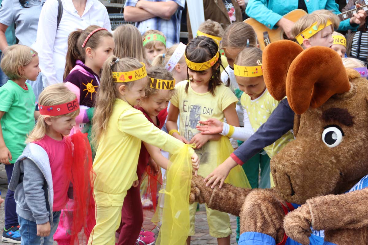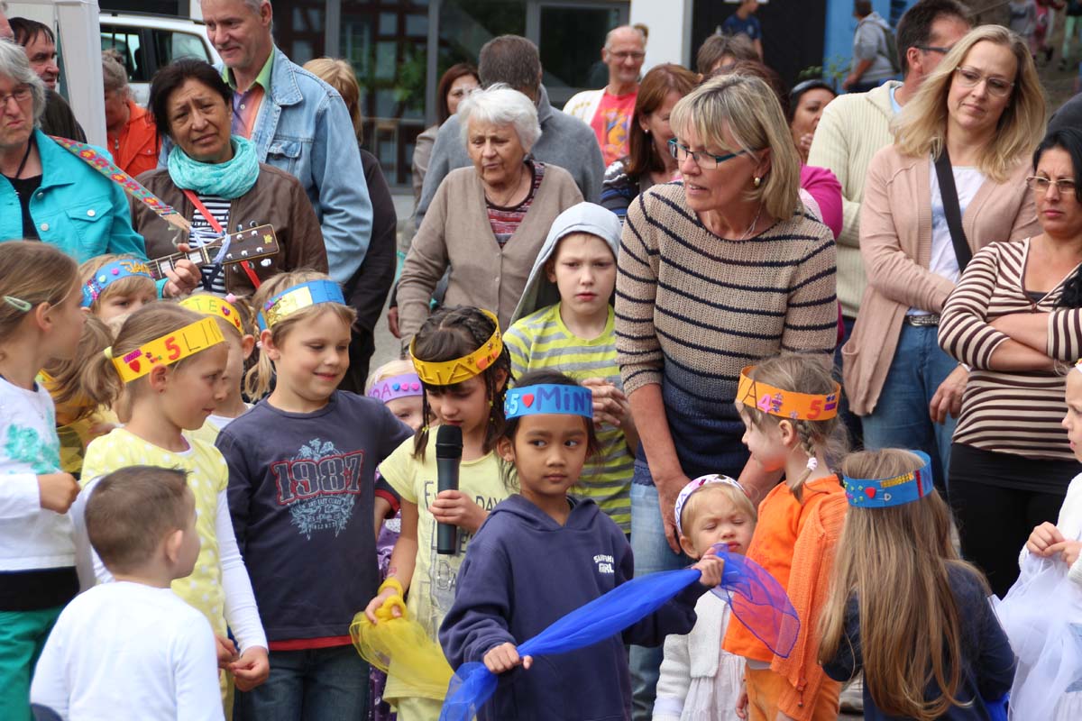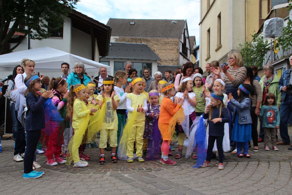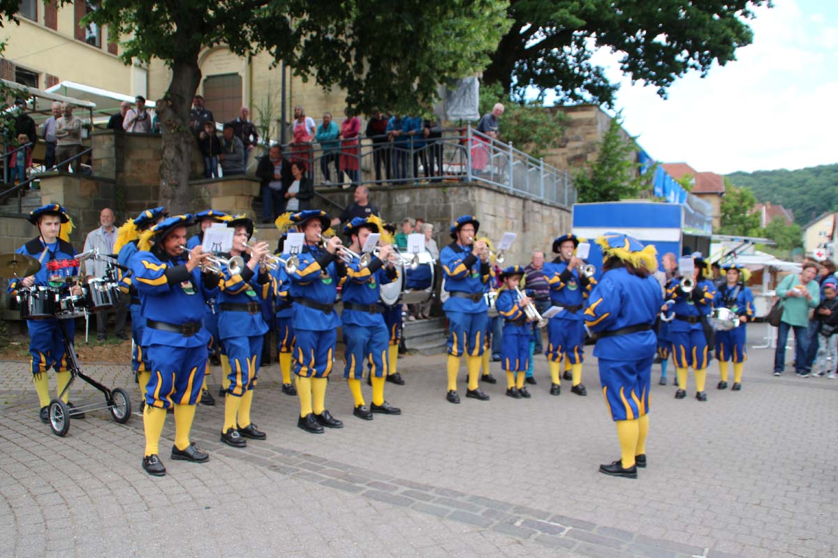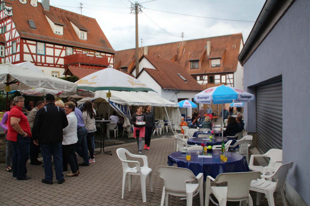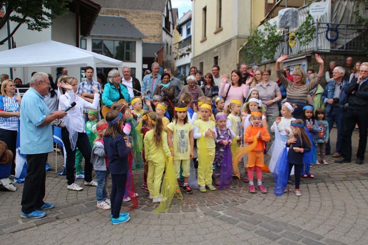 IMG_8753 (cr) Pünktlich um 17.00 Uhr zogen die Akteure zum Hoffenheimer Dorffest unter der musikalischen Begeleitung des Fanfarenzug Wiesenbach zur Begrüssung und zum Fassanstich ein. Da fehlte natürlich zur Begeisterung der Kinder auch Hoffi nicht. Mit einem Fässchen Freibier von Dachsenfranz wurde mit der Bevölkerung auf ein gutes Gelingen angestossen. Auch die Kindergartenkinder begeisterten das Publikum zur Eröffnung, die in diesem Jahr auch eine tolle Bilderausstellung beisteuerten. Platin Projekt, die Band der Musikschule Sinsheim. glänzte in diesem Jahr mit dem musikalischen Highlight am Samstag abend. Für gutes Essen und einem netten Abend an den Ständen war von den Hoffenheimer Vereinen bestens gesorgt.