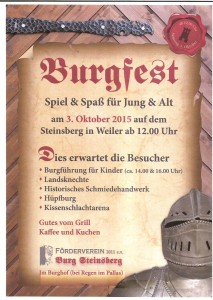 (zg) Der Förderverein Burg Steinsberg e.V. lädt am Samstag, den 03. Oktober, ab 12:00 Uhr, auf die Burg Steinsberg zu seinem „Burgfest für Jung und Alt“ ein.