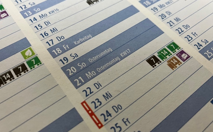 Die AVR Kommunal bittet um Beachtung der Nachfahrten aufgrund der Osterfeiertage Infolge der bevorstehenden Osterfeiertage kann es zu Verschiebungen bei den Abfuhrterminen...