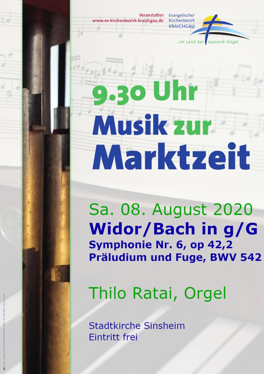 Stadtkirche Sinsheim, Musik zur Marktzeit am 08. August 2020 um 9.30 Uhr (Um 11 Uhr nichts statt). (zg) Die ersten drei Sätze der „Symphonie pour Orgue“ Nr 6 in g-Moll von...