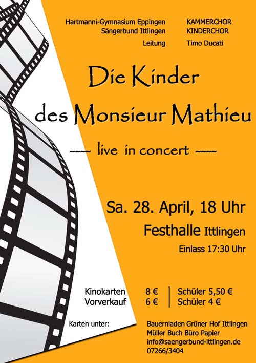 Kinderchor Sängerbund Ittlingen, Kammerchor Hartmanni-Gymnasium Eppingen (zg) Wann bietet sich schon die einmalige Gelegenheit ins Kino zu gehen und gleichzeitig einem...