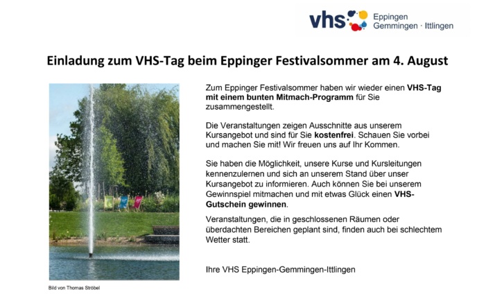Neues VHS-Programm und VHS-Aktionstag am 4. August Die Volkshochschule Eppingen – Gemmingen – Ittlingen stellt sich den gesellschaftlichen Herausforderungen: für das kommende...