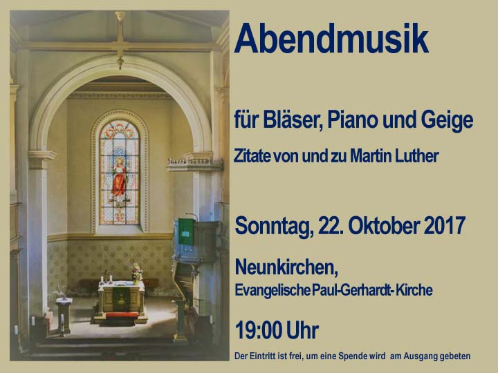 Abendmusik für Bläser, Piano und Geige in Neunkirchen