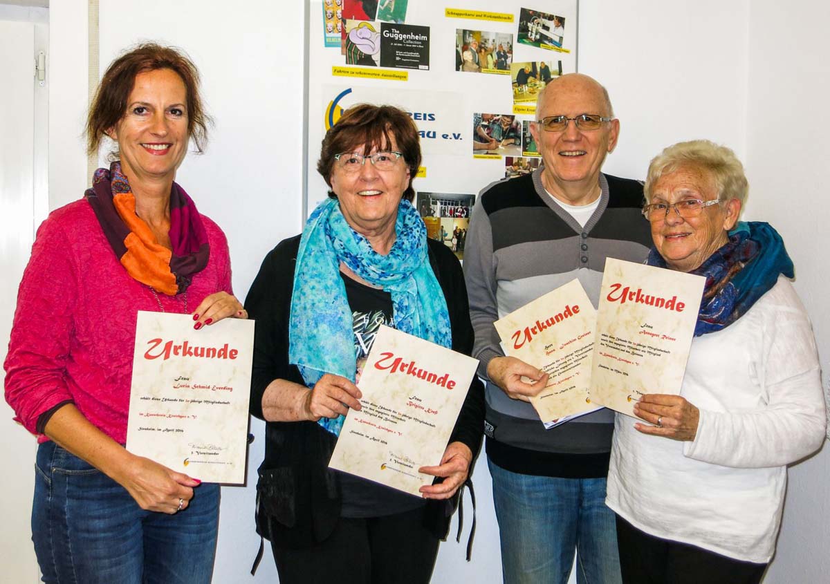 Diese stolze Zahl verteilt sich auf fünf treue Mitglieder (zg) Bei der diesjährigen Jahreshauptversammlung des Kunstkreises Kraichgau standen Ehrungen langjähriger Mitglieder...