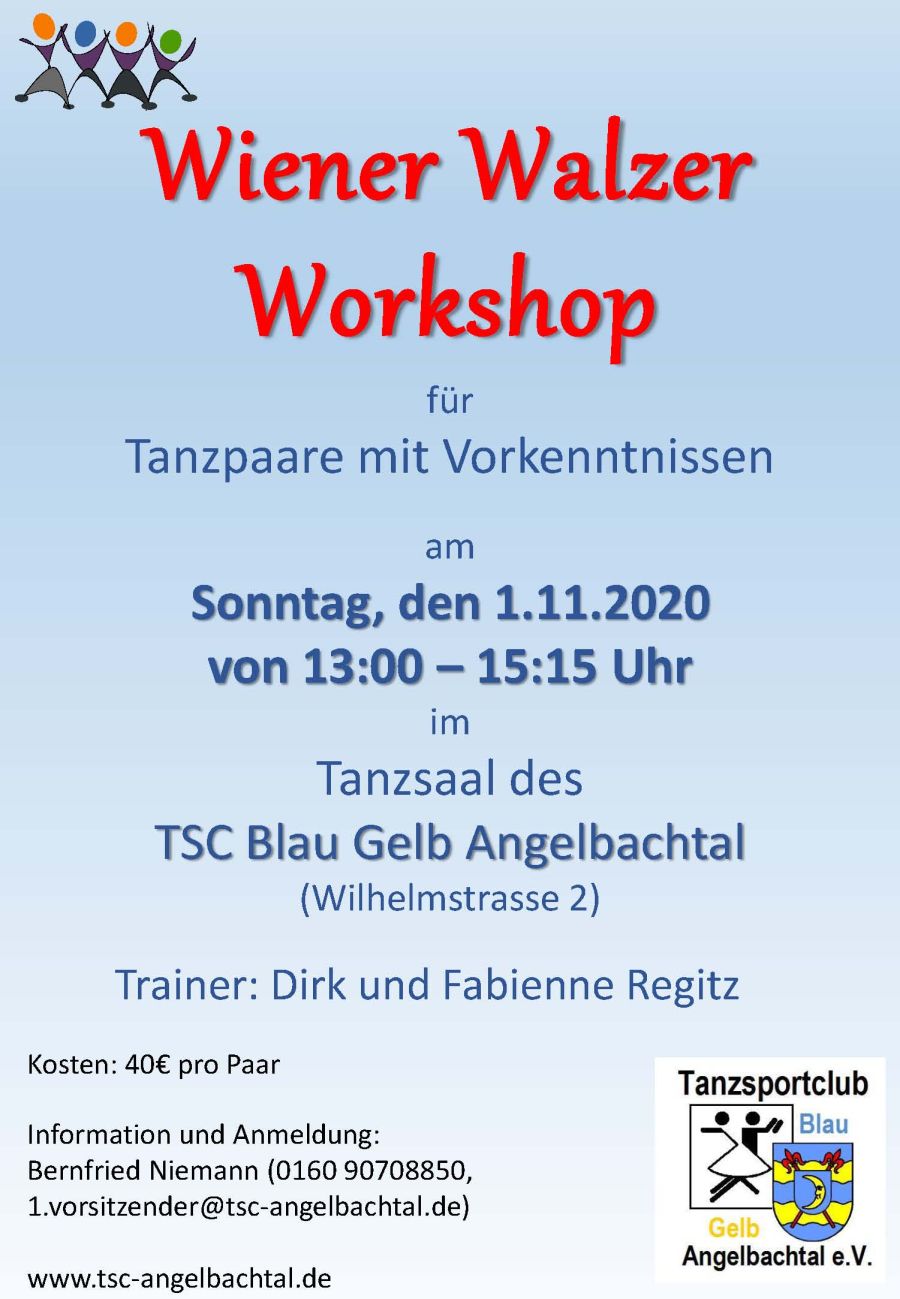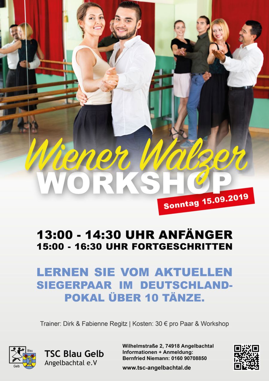 (zg) Am Sonntag, den 15. September werden Dirk und Fabienne Regitz, Deutsche Meister über 10 Tänze bei den Senioren II, zwei Wiener Walzer Workshops beim TSC anbieten: von 13 -...