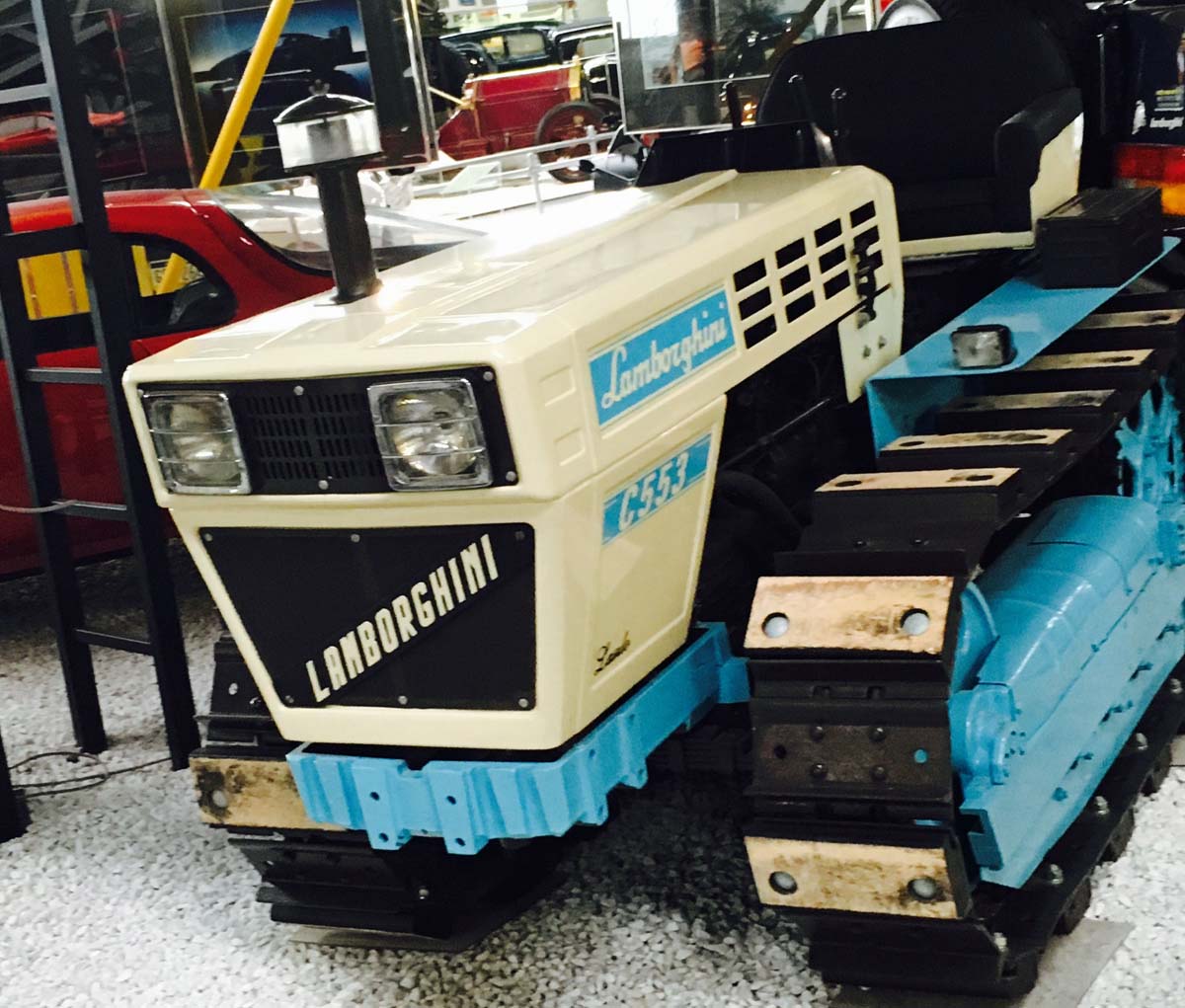 Noch bevor er den Wettstreit mit seinem Landsmann Ferrari anfing, hatte Ferruccio Lamborghini bereits Erfolge mit dem Traktorenbau. Ein Zeugnis hierfür ist die im Museum ausgestellte Weinbergraupe C553 – welche noch voll einsatzbereit ist.