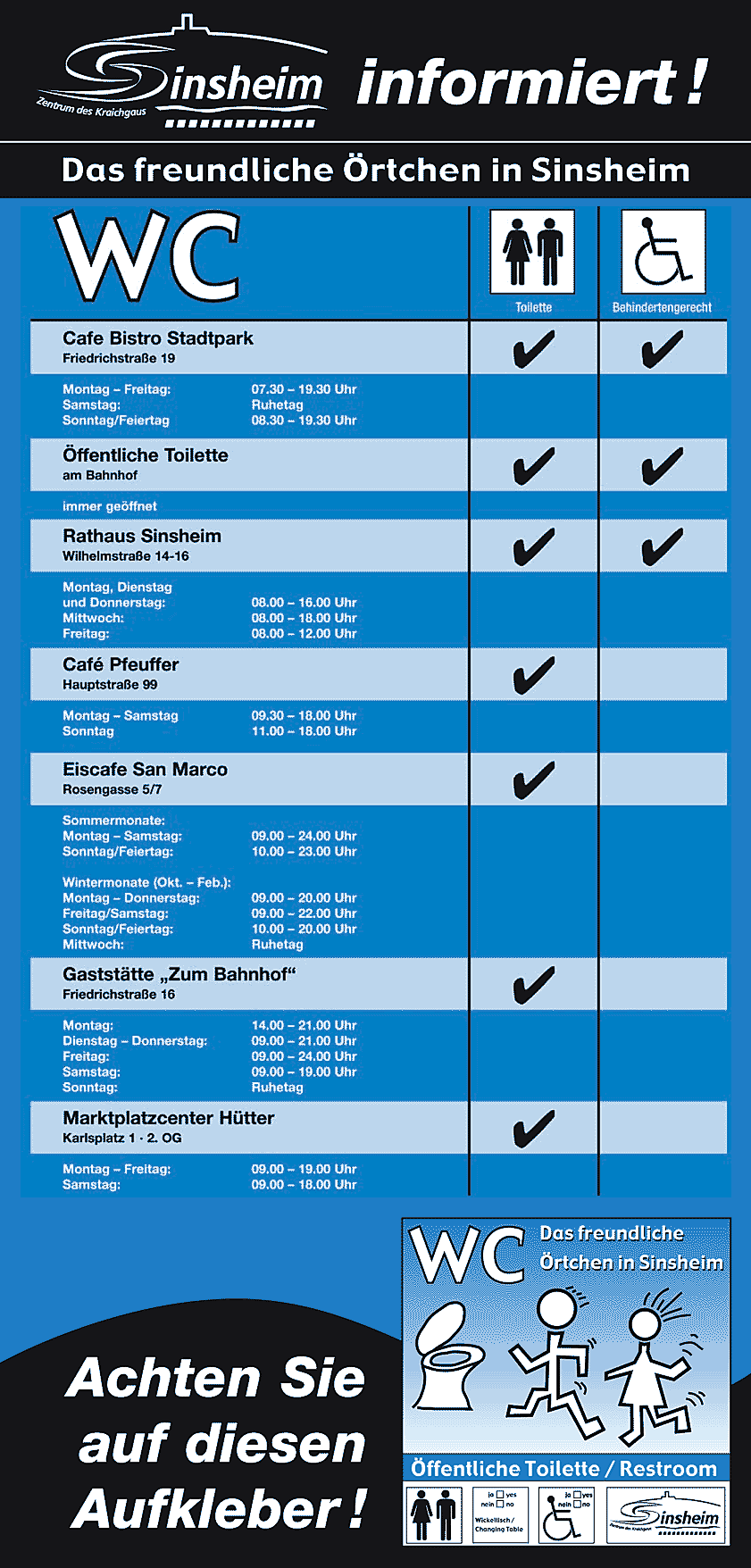 Aus diesem Grund stellen auch Sinsheimer Geschäftsleute der Bevölkerung ihr freundliches Örtchen zur Verfügung. Noch sind es wenige, aber vielleicht folgen andere Geschäfte bald dem vorbildhaftem Beispiel.
