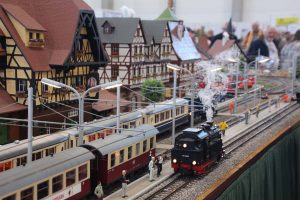 Neben den vielen gestandenen Modellbahnfans stürmten auch gleich am ersten Messevormittag mit kindlicher Vorfreude und viel Enthusiasmus mehr als 100 Kindergartenkinder und Schüler das Terrain. Am Kindergarten- und Schülerprojekttag zeigt sich, dass das Modellbahn-Hobby ein Riesenpotential hat, wenn man es nur lässt. Es wird gestaunt und gebastelt, die Feinmotorik geschult, konzentriert Neues erschaffen und spielend Technik begriffen. Genau das ist auch der Sinn des BDEF Junior-College Europa, dessen Team jedes Jahr mit am Start ist und die Kids der Besucher tatkräftig unterstützt. Reifere Modellbahnhasen zeigten an ihrem von den engagierten Markenherstellern der Branche mit reichlich Material ausstaffierten Stand den Kids, wie man ein Häusle baut oder ein ganzes Diorama, also einen Schaukasten mit Modellfiguren und -landschaften.