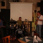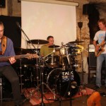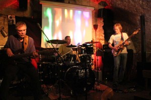 (cr) Improvisation ist alles. Hier trafen sich drei Musiker in Anne´s Keller zu „Interestellar Overdrive“, einem einmaligen Musik Experiment. Tommy Gorny (Gitarre), Karl Schramm (Bass) und Peter Sauter (Schlagzeug) waren ein tolles Trio, die ihrer Klasse gerecht wurden, denn abgesprochen war nur der Anfang und das Ende und zwischendrin liessen sie sich von ihrem musikalischen Gefühl leiten. Und das Ergebnis konnte sich hören und sehen lassen. Für das entsprechende Licht sorgte Jörg Hees, projeziert wurden via Beamer passende Lciht und Filmeffekte. Für Freunde von guter Musik einfach ein Muss. Dazu präsentierte Anne eine tolle Speisekarte aus den Kochbüchern von Star Trek.
