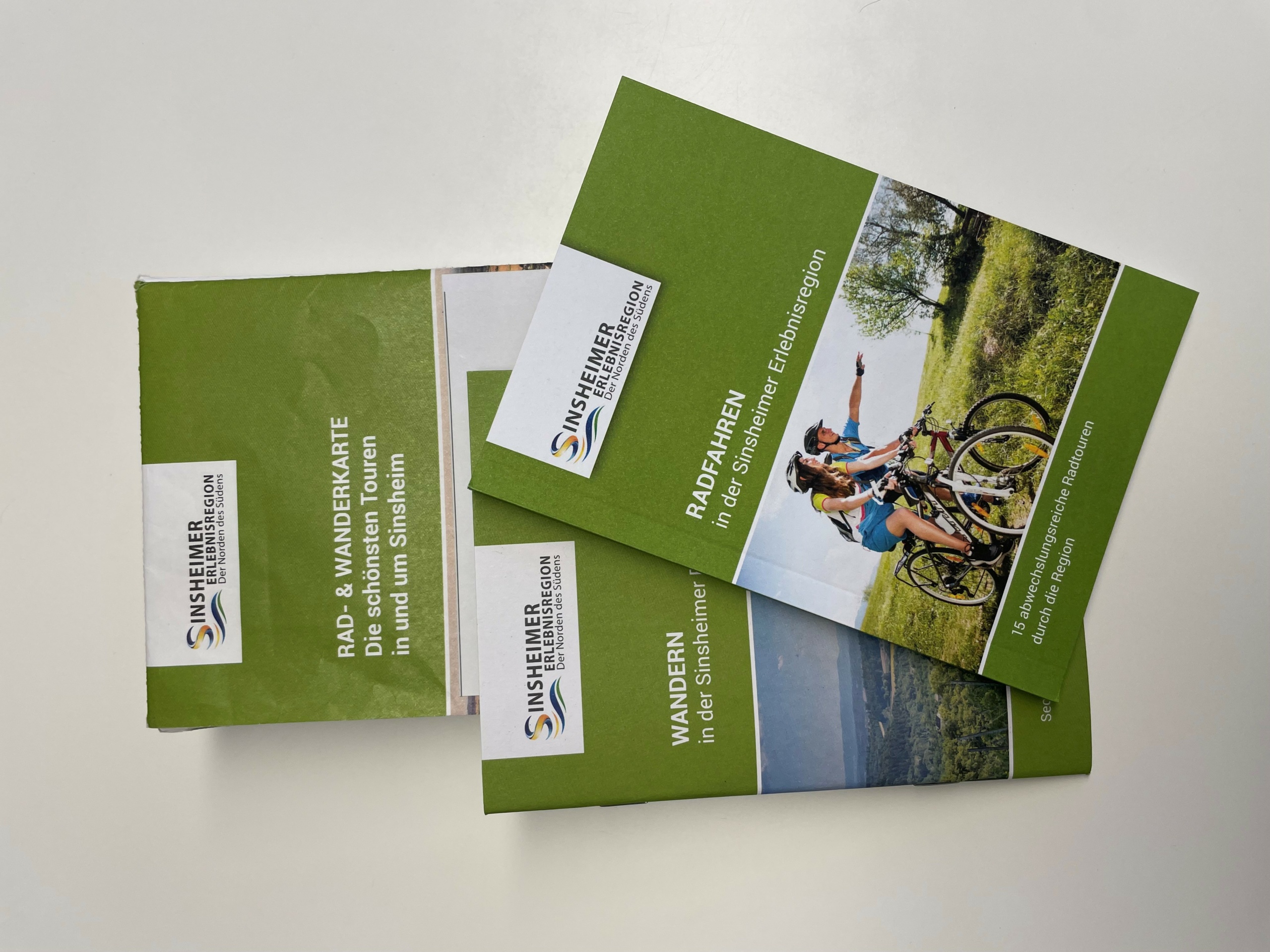 Die Tourist-Info Sinsheim bietet eine Vielzahl von Dienstleistungen für Freizeitaktivitäten im Freien an. Da die Sinsheimer Erlebnisregion bestens zu Fuß oder mit dem Rad zu erkunden ist, stehen ein Radbooklet und ein Wanderbooklet mit speziell ausgesuchten Routen in der Region kostenfrei zur Verfügung.