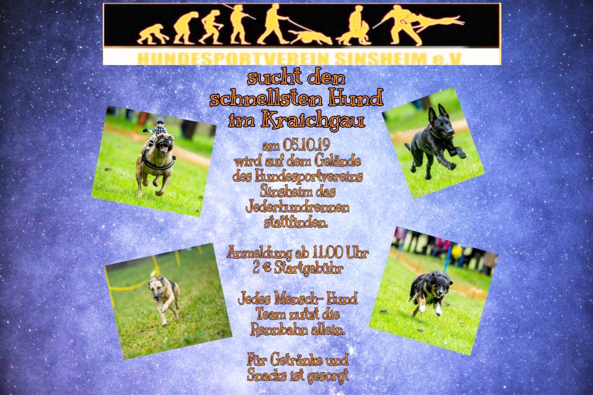 (zg) Am 05.10.2019 findet auf dem Vereinsgelände des Hundesportverein Sinsheim e.V. das Hunderennen ,, Schnellster Hund im Kraichgau “ statt.
