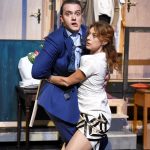 Das Stück heißt Nackte Tatsachen, ein sehr einfach gestricktes Boulevardstück. Hier kollidieren vier Ereignisse: Eine Haushälterin will es sich an ihrem freien Tag gemütlich machen, ein Paar will schnellen Sex, ein anderes Paar versteckt sich vor der Steuerfahndung und ein Einbrecher sucht Beute. Alles im selben Haus. Wir kennen nur den 1. Akt, wo die Figuren unerwartet aufeinandertreffen. Mit diesem Stück geht die Theatertruppe auf Tournee – so, wie das Ensemble der BLB auch.
