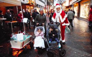 (zg) – Endlich war es so weit. In der Bahnhofstrasse in Sinsheim wurde es langsam dunkler und man konnte die Spannung und Aufregung von jedermann spüren. Der SPD-Nikolaus stattete auch in diesem Jahr den Kindern in Sinsheim einen Besuch ab. Voller Ehrfurcht vor dem Nikolaus begrüßten ihn die Kinder.