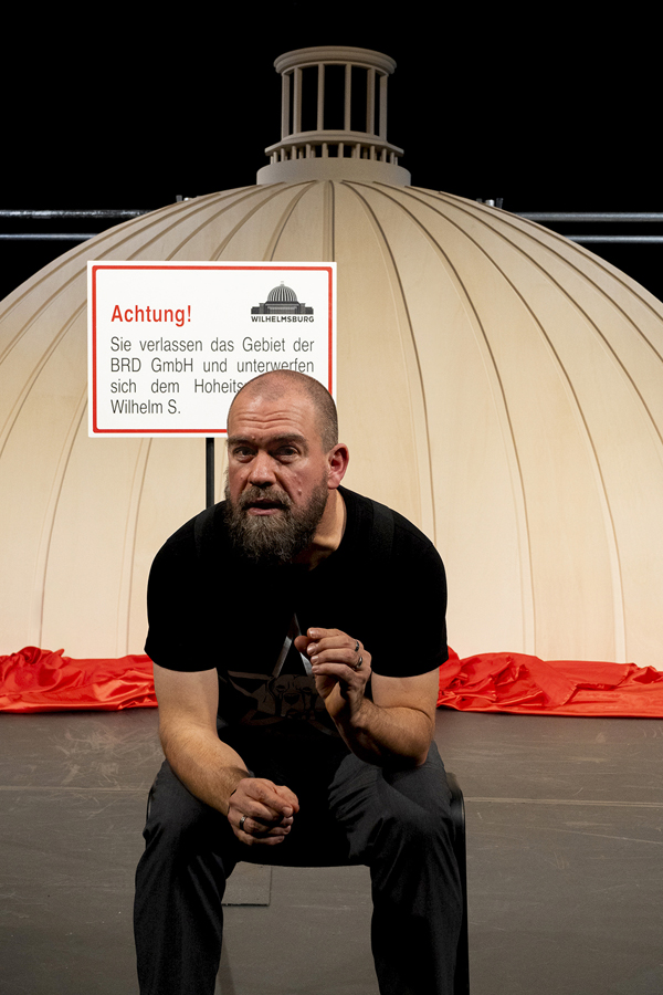 Ein Mann stellt sich dem Publikum als Wilhelm S. vor und bedankt sich beim Theater für die Einladung. Er möchte eine „kleine Einführung zum Thema Selbstverwaltung, Wege in die Unabhängigkeit“ halten. Klingt interessant, oder? Doch je länger der Vortrag dauert, umso deutlicher wird, dass er die Rechtmäßigkeit der Bundesrepublik anzweifelt. Ist der Mann ein Reichsbürger?