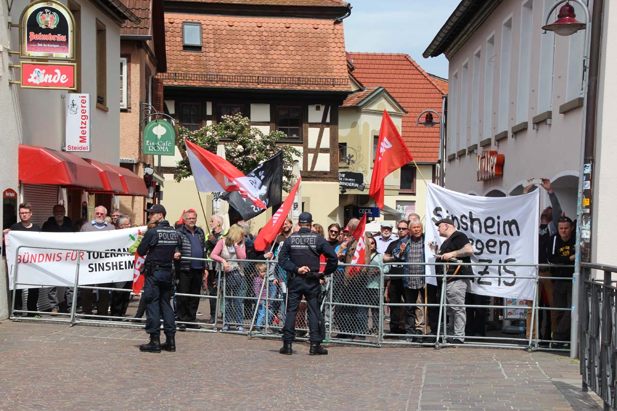 (cr) Es war einfach wieder unerträglich am Samstag für die Sinsheimer Bevölkerung am Sinsheimer Wächter. Sie reagierten mit Unverständnis auf diese Art von einer Möchtegern politischen Veranstaltung. So ein riesiges Polizeiaufgebot für ein paar unbelehrbare Demonstranten einer rechten Partei, die sich Sinsheim mehrmals jährlich aussuchen um sich mit ihren extra angereisten Teilnehmern den Unmut des Volkes auf sich zu ziehen. Sie sind schon hartnäckig. Wie oft muss dieser klägliche kleine Haufen sich in unserem Sinsheim noch lächerlich machen, um zu verstehen das hier kein Platz für sie ist. Dumpfe und ausgelutschte Parolen sind hier megaout. Und so war es auch dieses Mal wieder, das der kleine Sinsheimer Widerstand gegen diese Veranstaltung, auch dieses mal wieder wesentlich grösser war als die Teilnehmer der doch so unbeliebten Kundgebung. Einzig und allein der Sinsheimer Wächter etrug diese Veranstaltung klaglos.Der Wächter ertrug es klaglos