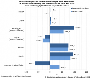 Baden-Württemberg: Nachfragezuwachs bei Hybrid-Kfz stärker als bei Diesel und Benzinern zusammen