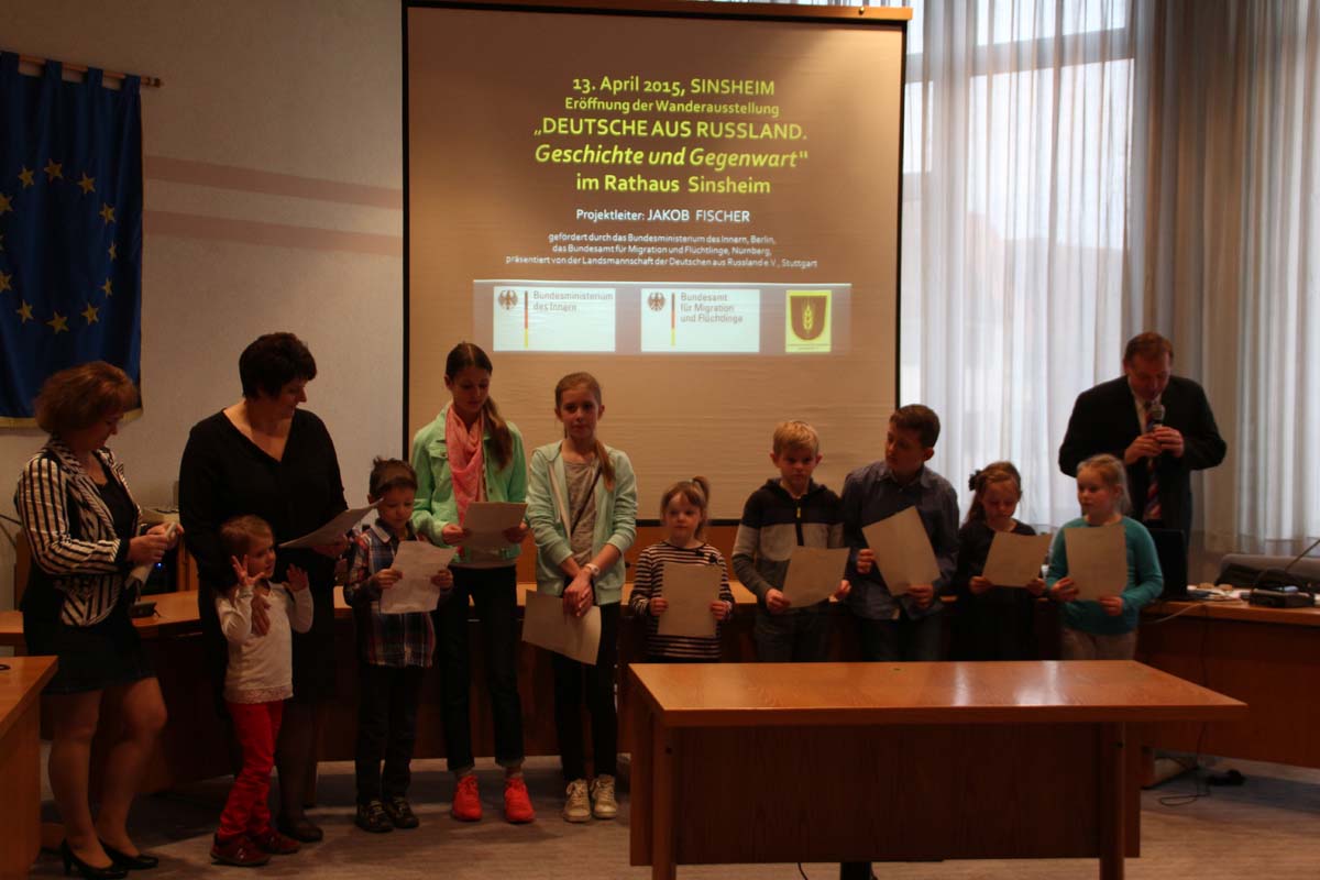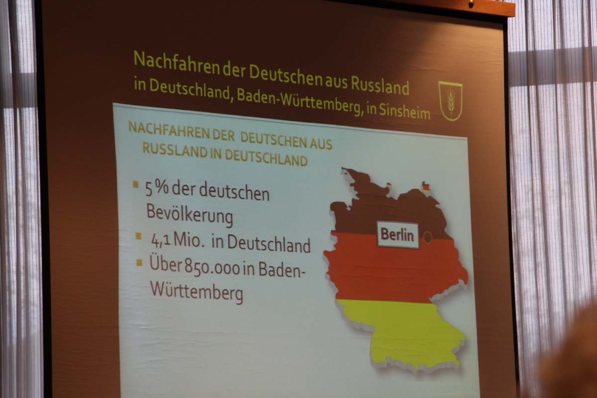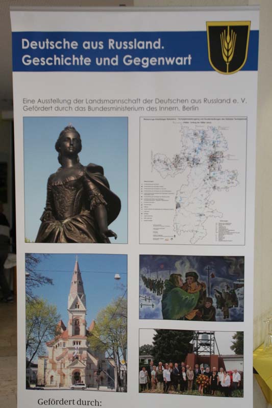IMG_3154(cr) Bereits zur Eröffnungsveranstaltung zur derzeitigen Ausstellung im Sinsheimer Rathaus wurde grosses Interesse gezeigt. Die Ausstellung, von der Bundesregierung, gefördert, zeigt die Geschichte und die Integration der Russlanddeutschen. Hier wird umfassend die Vergangenheit erklärt und lässt unsere ehemaligen Landsleute und deren Nachkommen in einem ganz anderen Licht erscheinen. Denn sowohl in ihrer ehemaligen Heimat Russland geltent sie als wenig erwünschte Deutsche und bei uns gelten sie als Ausländer. Somit können Vorurteile abgebaut werden. Viele namhafte Künstler, Sportler und Politiker haben ihre Wurzeln in Russland. Diese sehenswerte Ausstellung kann noch bis zum 04. Mai im Rathaus zu den normalen Öffnungszeiten besichtigt werden.