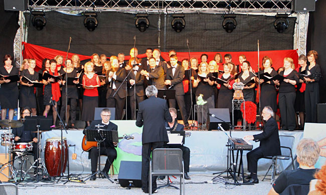Von Klassik bis zu modernen Songs der Chor beherrscht jedes Genre. Das Programm reichte von Beethoven „Der Kuss“ und Mozart „Ein Mädchen oder Weibchen“ bis hin zu den Prinzen „Küssen verboten“. Hervorragend abgerundet wurde der Chor von Holger Weiss (Gitarre), Karl Schramm (Bass), Jörg Burgstahler (Percussion) und Werner Freiberger (Klavier).