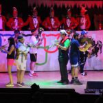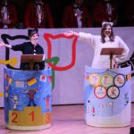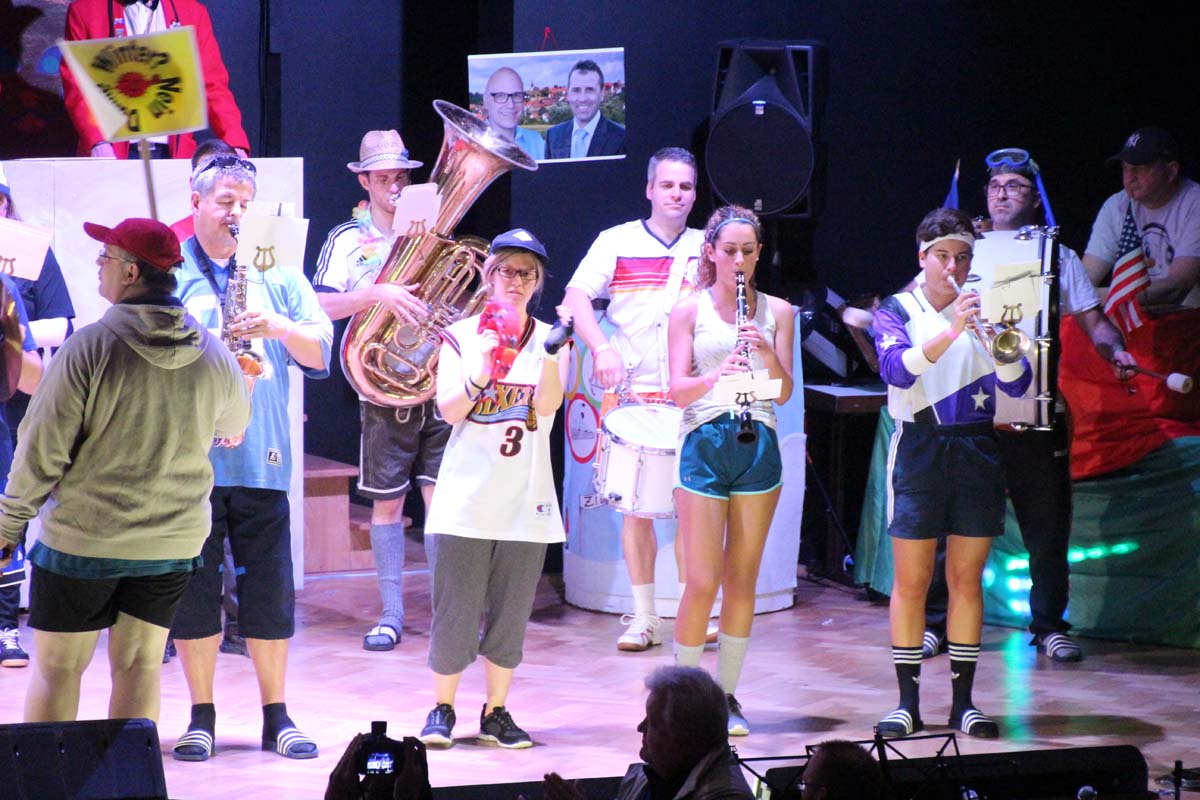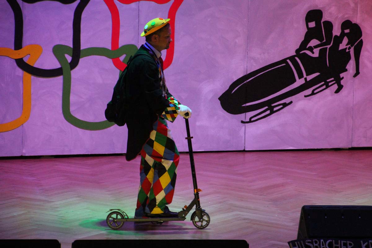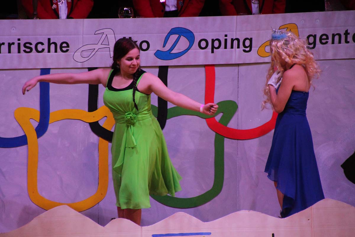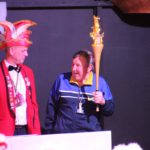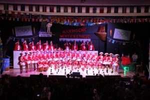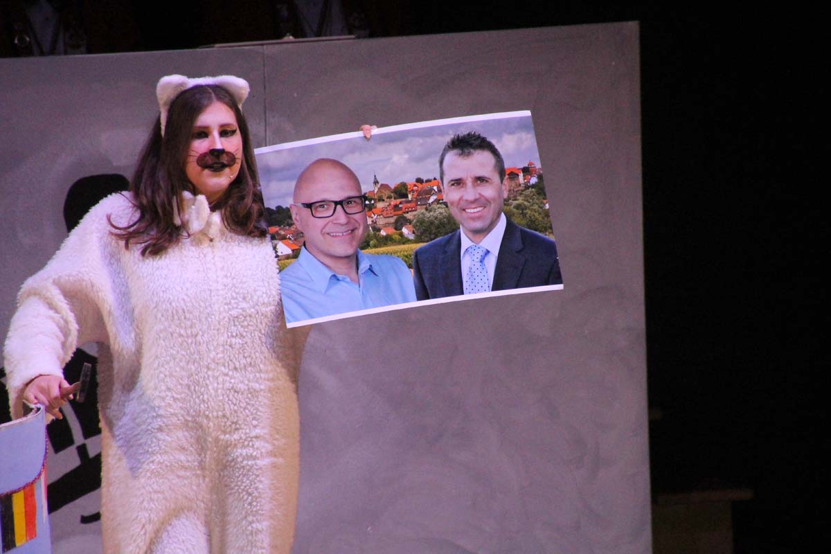Auch schon zum alljährlichen Programm gehört das Duo Albrecht/Spranz. Mit dem Song über Tante Anna zeigte unser OB Jörg Albrecht das er auch gesangliche Qualitäten besitzt. Indischen Tanz zeigte die Tanzgruppe der katholischen Kirche und auch Dekan Hafner übernahm hier gerne eine Statistenrolle. Dann durfte die Mittlere Garde ihr können auf der Bühne zeigen. Sicher und synchron schwangen ihre Beine über die Bühne.
