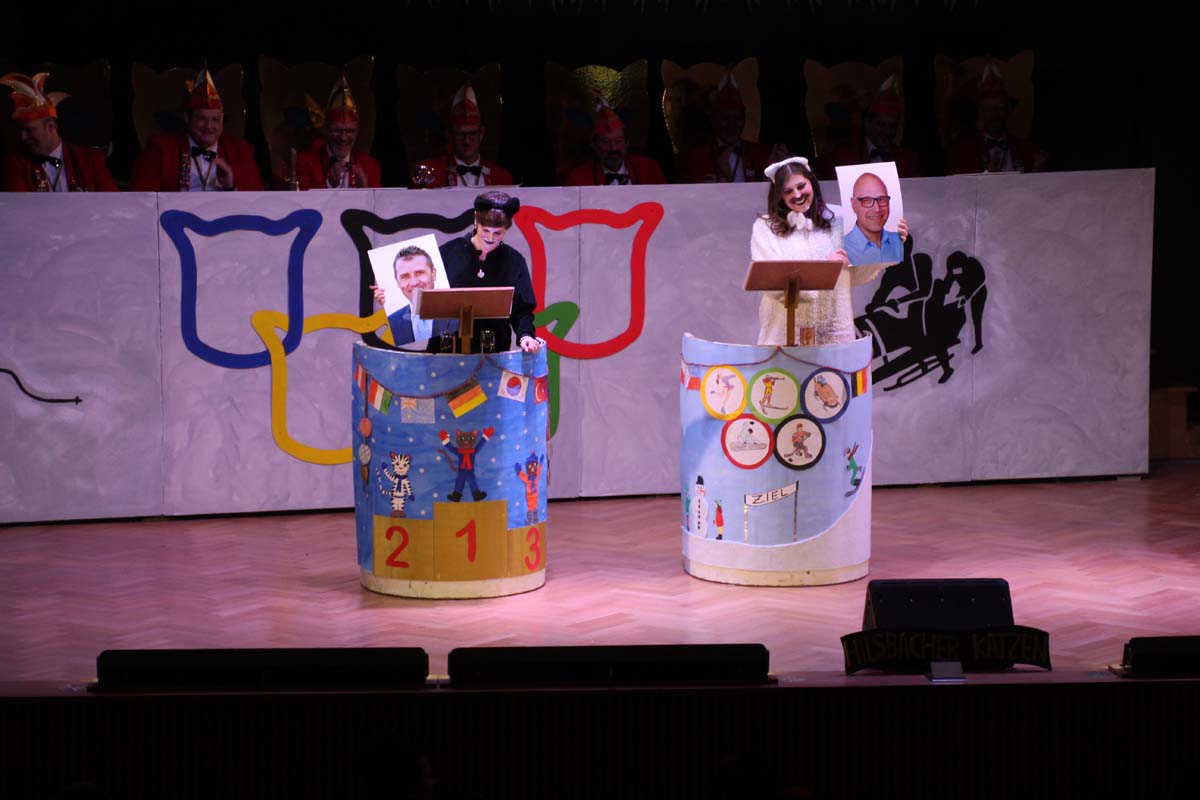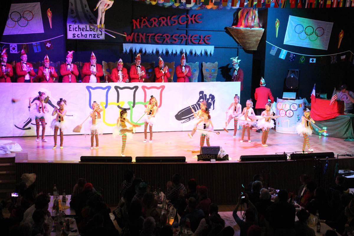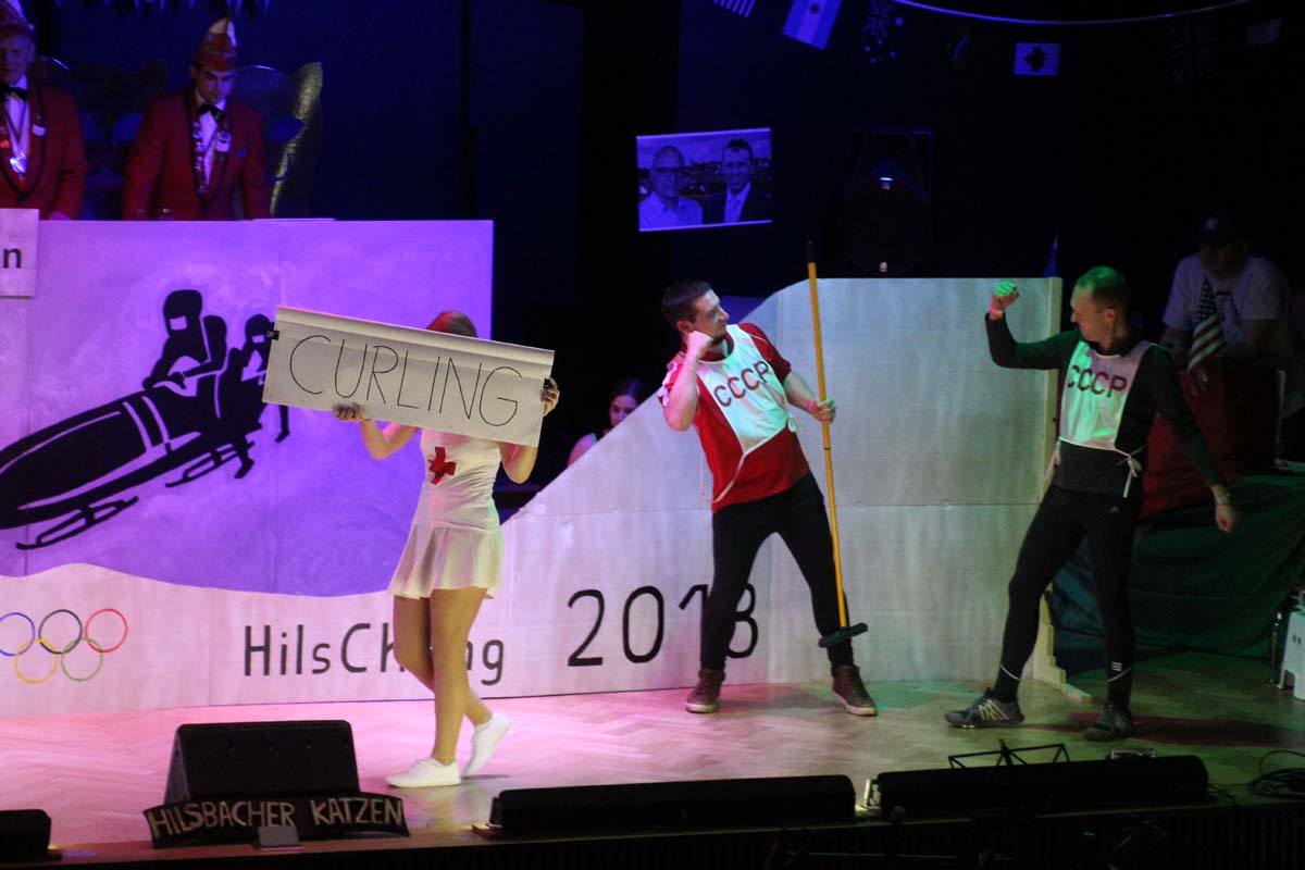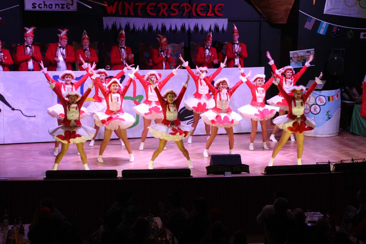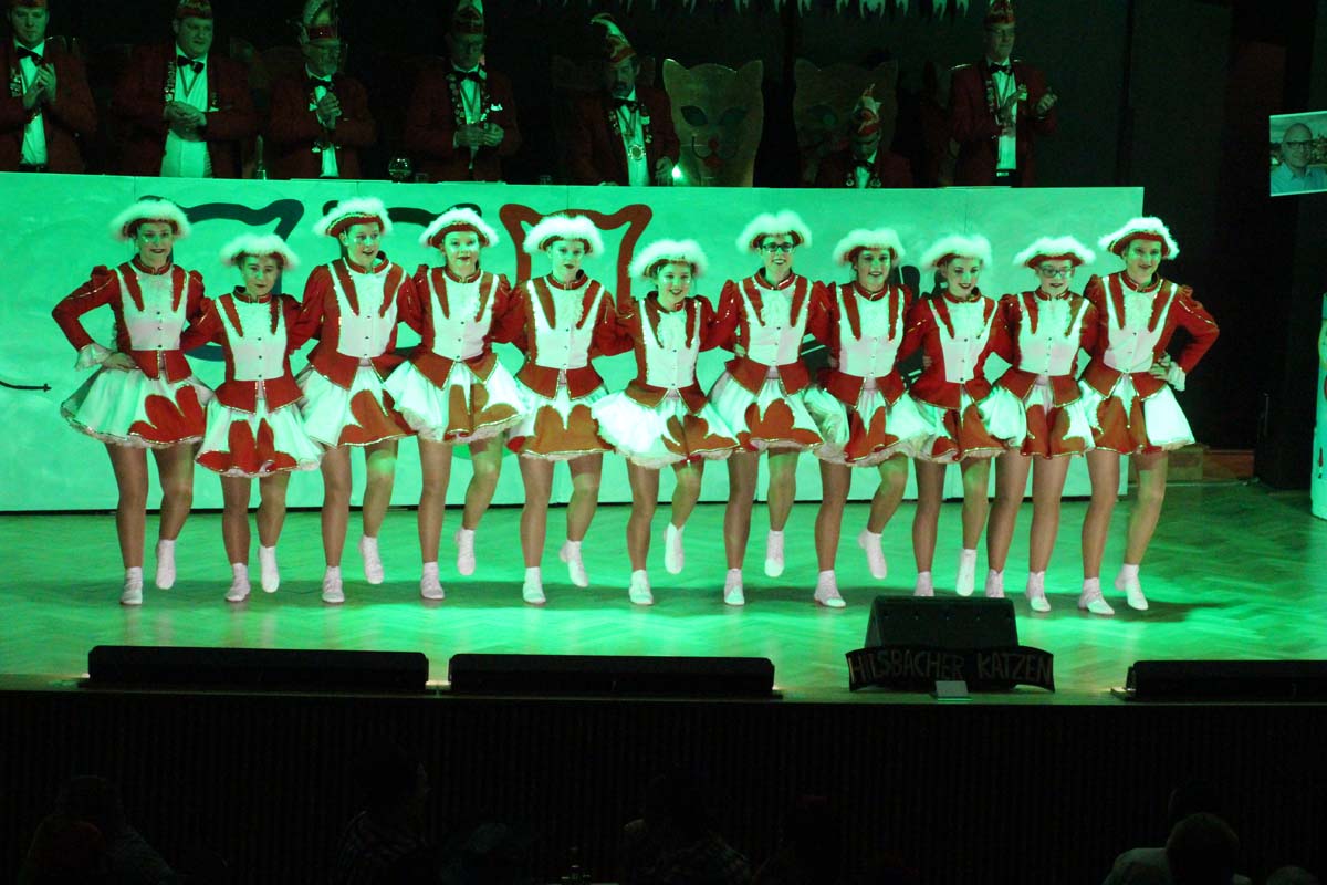 Feierlich wurde die Veranstaltung mit einer Fackel das närrisch olymische Feuer entzündet. Dann standen auch schon 116 Akteure bereit das ausverkaufte närrische Haus zu unterhalten. Bereits der Einmarsch auf die Bühne zeigte ein herrliches Bild. Und dann ging auch schon die Post ab. Die tanzenden Pfötchen, die jüngste Truppe der Hilsbacher Katzen, tanzten sich mit Frosty the Snowman und Ice Baby nicht nur in die Herzen ihrer Eltern, sondern verzauberten auch das Publikum mit ihrer tollen Show. Was wäre der Hilsbacher Fasching ohne eine närrische Bütt über das vergangene Dorfgeschehen. Katz und Katz hatten da so einiges zu erzählen und auch auch OV und OB mussten sich so einiges sagen lassen. Gute Nachwuchsarbeit zeigte sich bei der neuen Kleine Garde. Den Applaus für ihre tolle Leistung hatten sie sich redlich verdient.