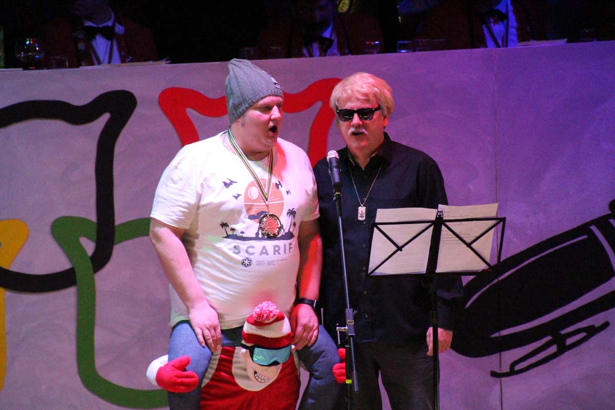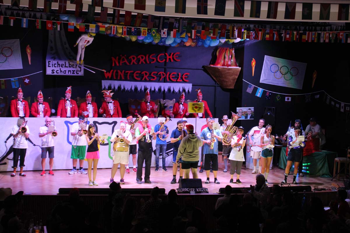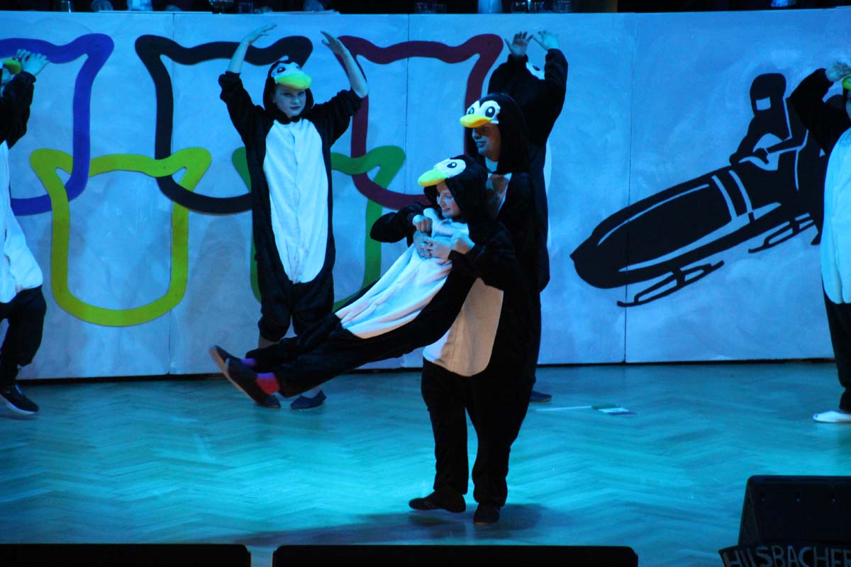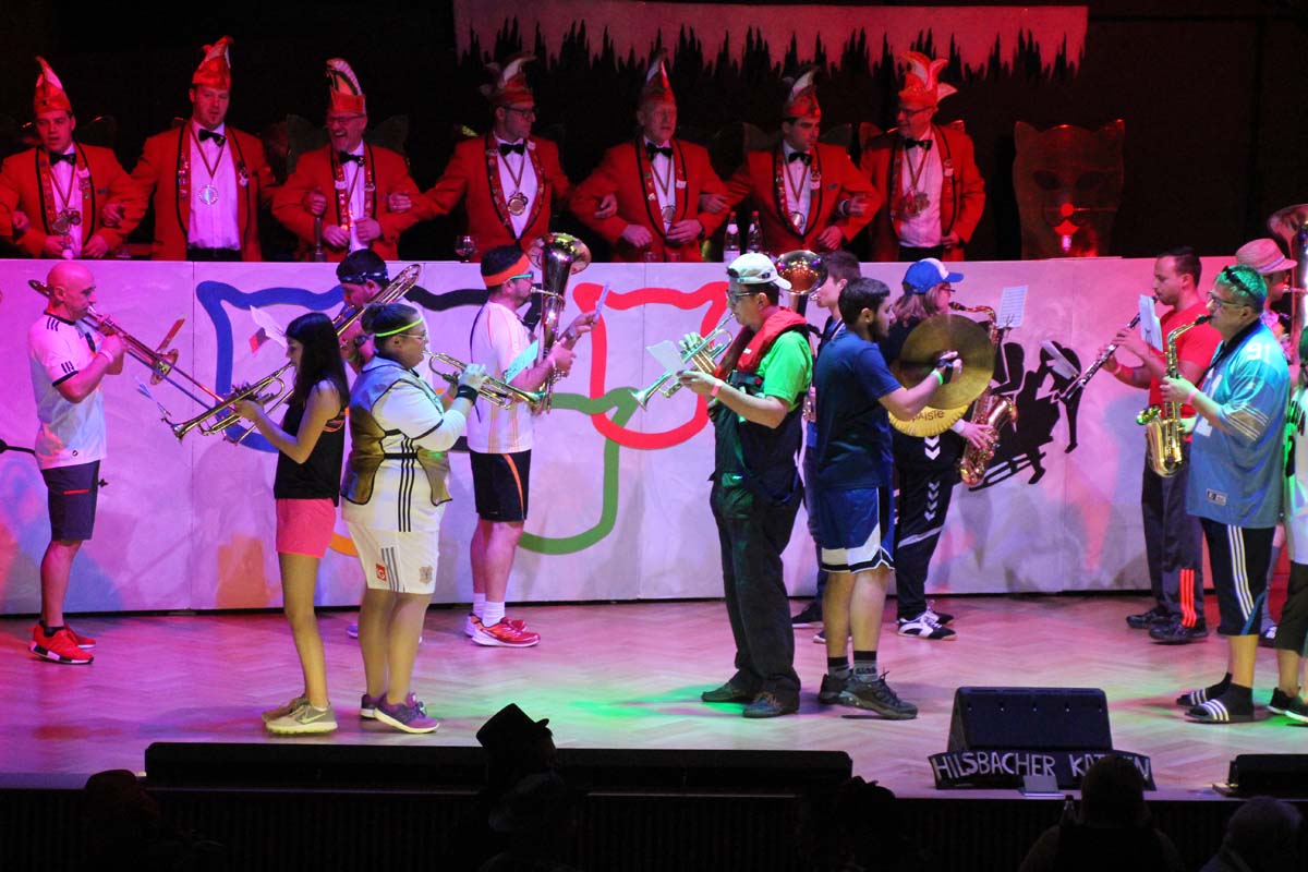 Das schöne am Hilsbacher Karneval ist das sich fast alle Vereine hier aktiv am Programm beteiligen. So tanzten von Reitverein Pinguine olymische Winterdiszplinen. Stammgast ist bereits auch der Blöde Hein, alias Frank-Sebastian Becker. Mit seiner Büttenrede hat er jedes Jahr was neues über seine Frau und ihre Perlmutter zu erzählen. Für ein wenige musikalische Unterhaltung sorgte dann der Musikverein Hilsbach. Ihnen folgte die grosse Garde der Hilsbacher Katzen mit einer sagenhaften tänzerischen Leistung ihres Gardetanzes.