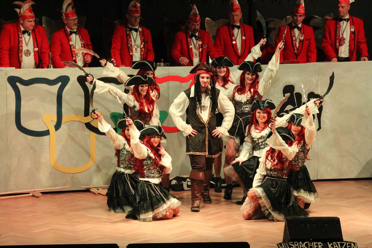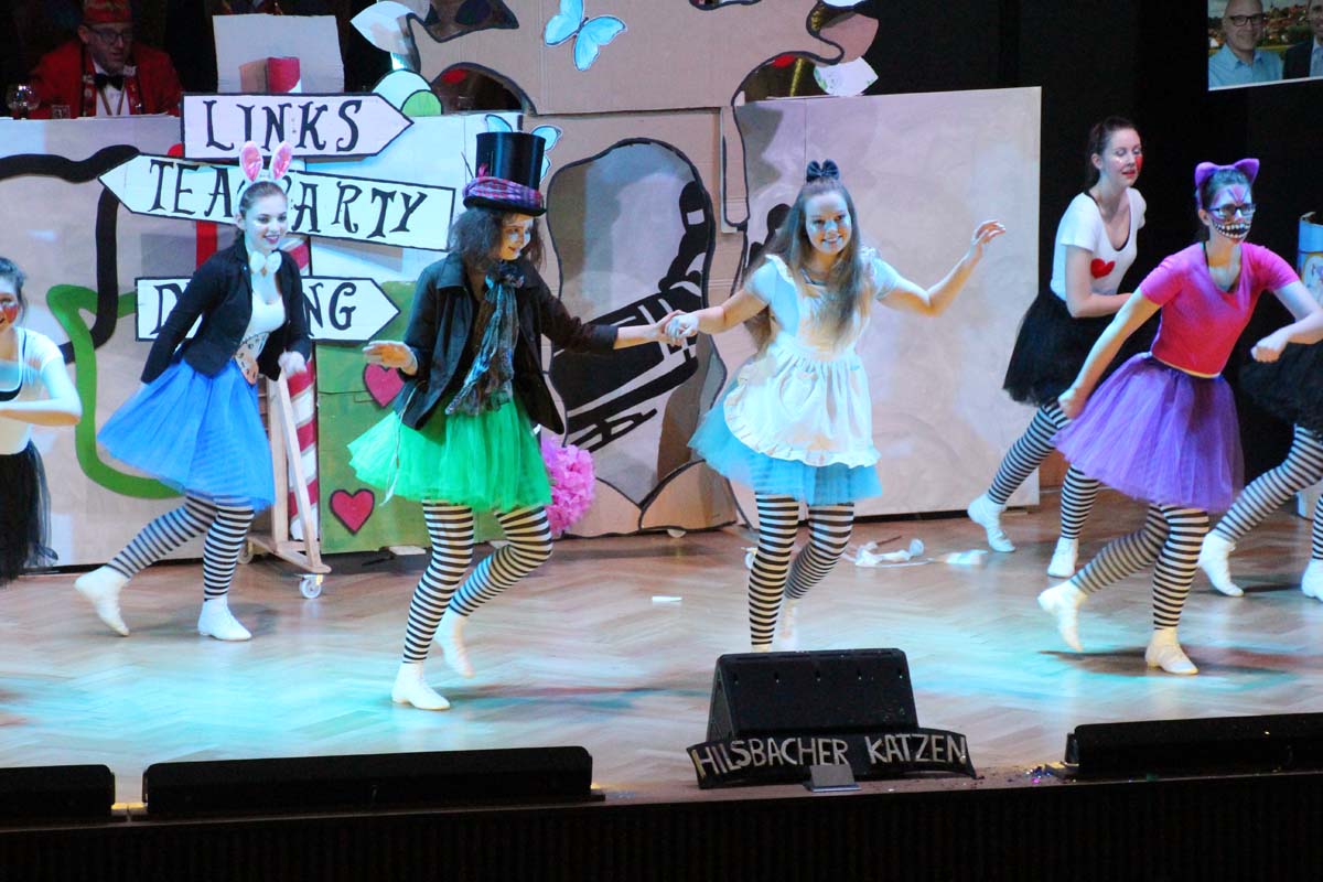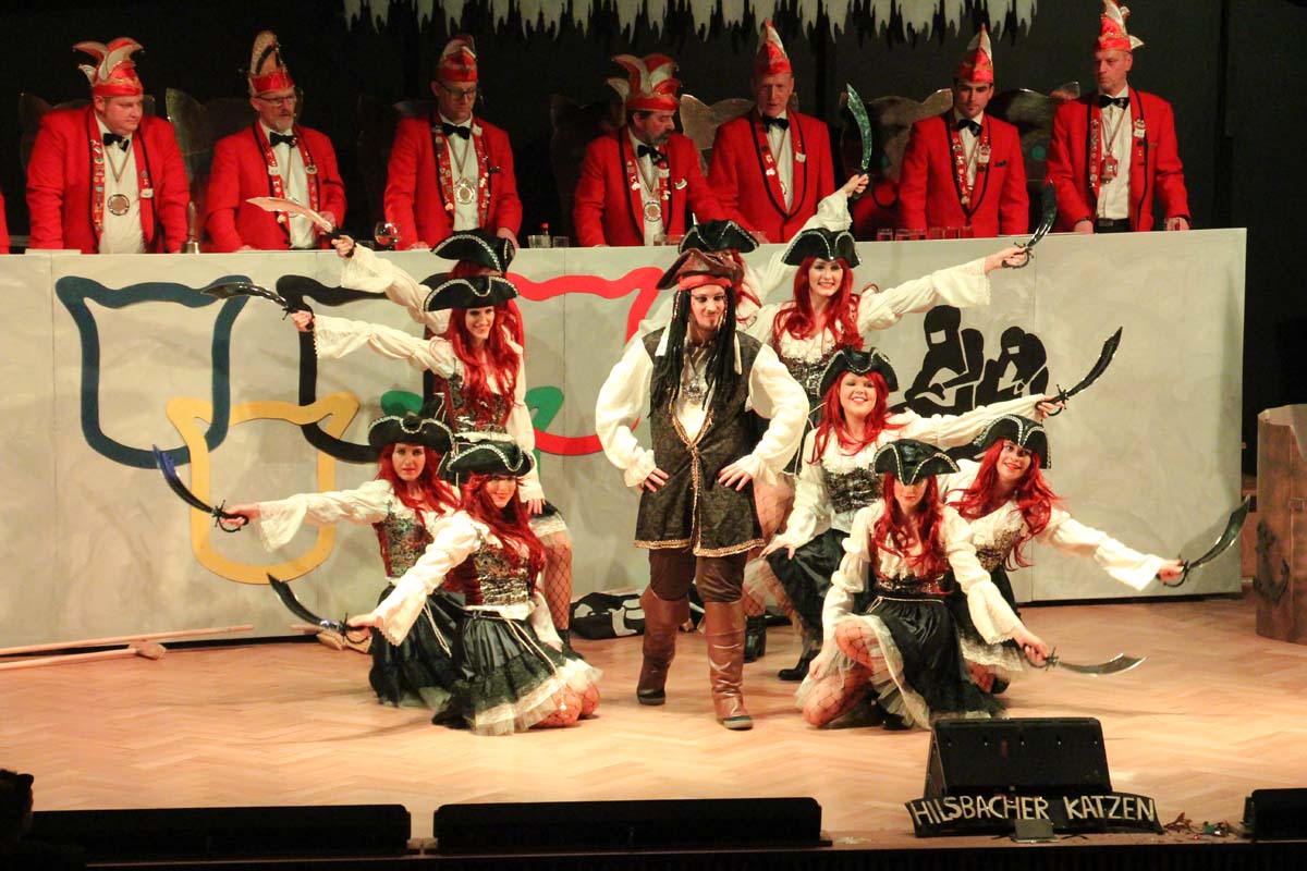 Mit Alice im Wunderland begeisterte die mittlere Garde mit ihrem diesjährigen Showtanz Hier hatte man sich mit Bühnenbild und Kostumen richtig Mühe gemacht. Das auch die tänzerische Qualität stimmte, ist bei den Hilsbacher Katzen selbstverständlich. Der folgende Auftritt des SV Hilsbach begeisterte vorallem die jungen im Publikum. Ihre Rammstein Gugge Show war einfach bombastisch. Ein guter Schluss ziert alles. Die grosse Garde zeigte eine tolle Show aus Fluch der Karibik, mit dabei natürlich ein echter Jack Sparrow als Verstärkung. Die selbst genähten aufwendigen Kostume verfehlten ihre Wirkung nicht.