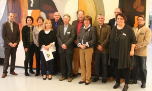 (Foto Landratsamt Rhein-Neckar-Kreis): „Vielen Dank für Ihre lange Treue zum öffentlichen Dienst“: Landratsstellvertreter Joachim Bauer (l.) und Holger Vettermann vom Personalrat (5.v.l.) gratulierten langjährige Mitarbeiterinnen und Mitarbeiter der Kreisbehörde zum 25- bzw. 40-jährigen Dienstjubiläum: (v.l.n.r.) Ursula Hakala, Regina Stadler, Sandra Exel, Michael Thoennes, Jörg Bayer, Dr. Brigitta Reiss, Gerald Teufel, Andreas Hornauer, Manuela Kocher und Tilo Reinhard.