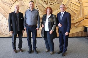 Zunächst gratulierte er herzlich Dr. Siegfried Bauer, der im Veterinäramt und Verbraucherschutz arbeitet und in Schwarzach wohnt, zum 25. Dienstjubiläum. Gar schon 40 Jahre beim Landkreis ist die Eppelheimerin Doris Beckenbach beschäftigt, die im Ordnungsamt für die Erteilung waffen-, jagd- und sprengstoffrechtlicher Erlaubnisse zuständig ist. Mit den humorvollen Worten „für die meisten von Ihnen fühlt es sich momentan wohl noch wie Urlaub an“ verabschiedete Landrat Dallinger anschließend Mitarbeiterinnen und Mitarbeiter in den Ruhestand. Den Glückwünschen für eine hoffentlich lange kommende Zeit bei bester Gesundheit schloss sich Horst Post, Mitglied des Personalrats des Landratsamts Rhein-Neckar-Kreis, an. Bei der Feierstunde mit dabei waren auch zahlreiche Dezernats- und Amtsleitungen des Landratsamts Rhein-Neckar-Kreis.