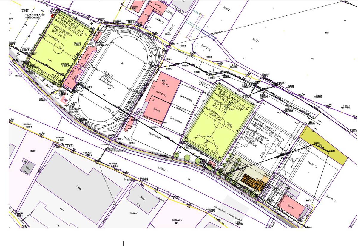Anfang 2017 wird schließlich mit dem Umbau der Sportplätze 3 und 4 begonnen und neu ausgerichtet. Aus den Rasen- werden Kunstrasenplätze mit einer neuen Beregnungs- und Flutlichtanlage. Im Bereich des Sportplatzes 4 werden neben dem neuen Funktionsgebäude und einer neuen Hammerwurfanlage auch weitere Parkplätze entstehen.