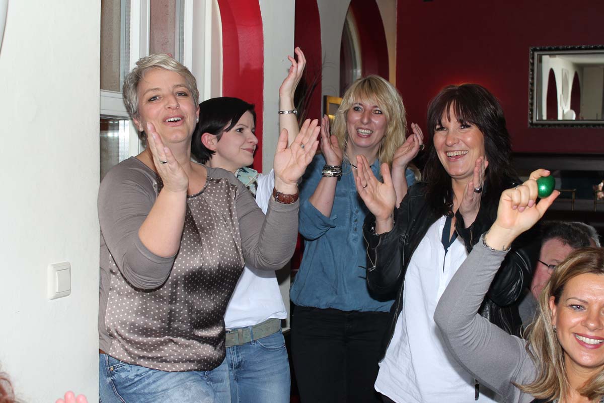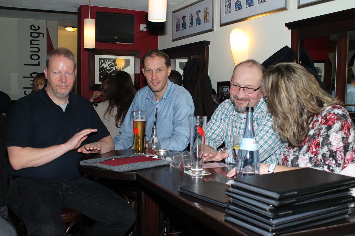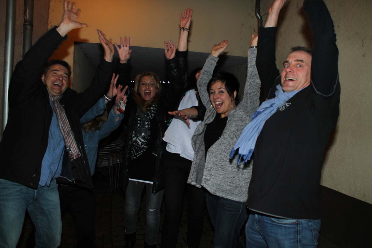Die im Quints-Musikprogramm fest etablierte Akustikband „Flugrost“ lud zum mit singen und mitfeiern ein. Dies wurde sehr dankend angenommen und darüber hinaus, hatten die Shakereier der Band sofort riesiges Interesse bei einigen percussionfreudigen Damen geweckt, was zur Folge hatte, dass heftig zum Takt mitgerasselt wurde. Das ein oder andere Ei soll laut Insiderangaben sogar mit Autogrammen in den Handtaschen der Damen das Lokal verlassen haben ;-).