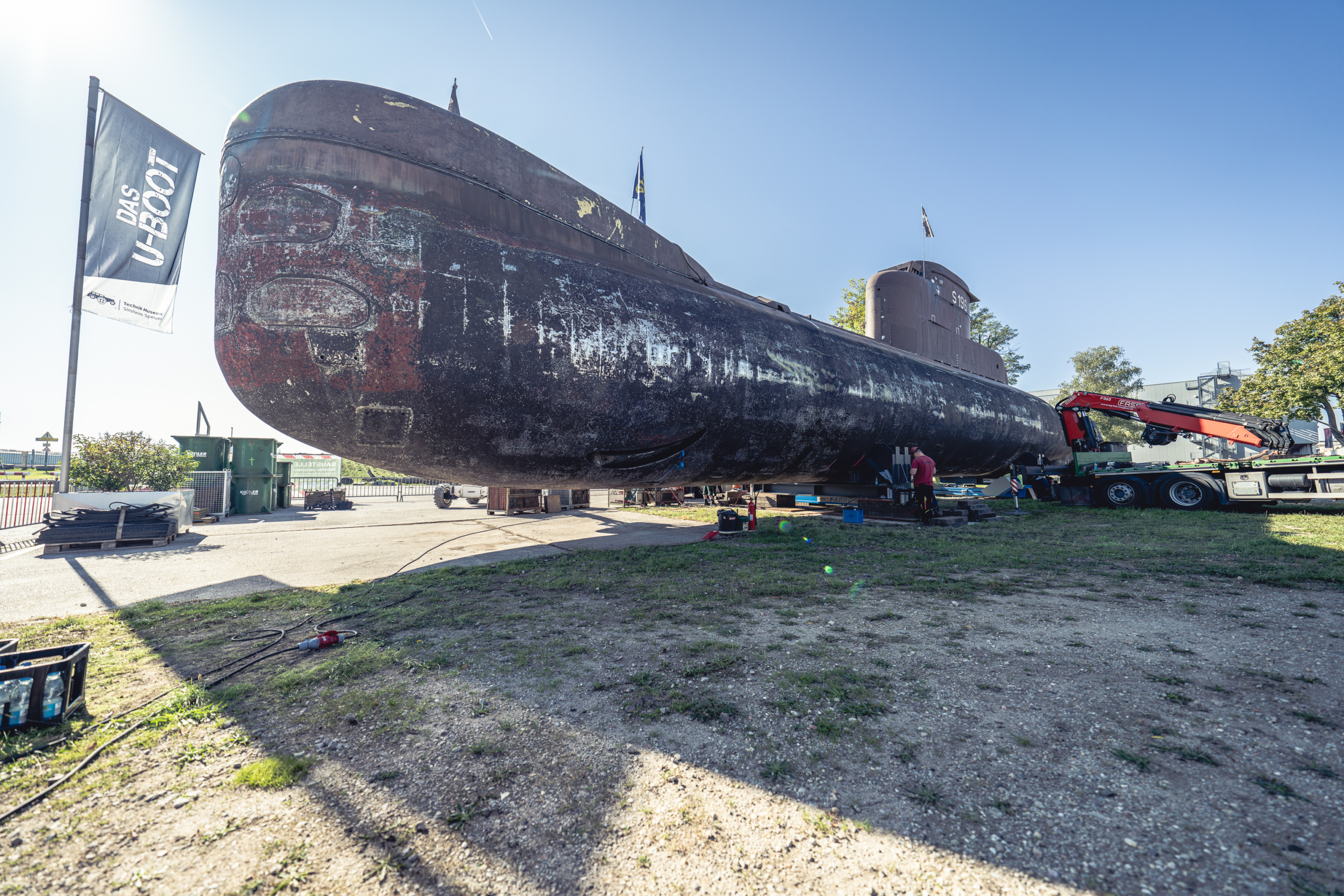 Dieses Band kann man sich vereinfacht vorstellen wie eine Banderole um eine Zigarre, die als Schutz dient. Der Zeitplan der Museumsleitung, um die Leihgabe der Wehrtechnischen Studiensammlung des Bundesamtes für Ausrüstung, Informationstechnik und Nutzung der Bundeswehr (BAAINBw) nach Sinsheim zu transportieren, ändert sich dadurch nicht. „Wir sind froh, mit dem U-Boot in Speyer zu sein, um alle Tests und Arbeiten in Ruhe, mit genügend Platz und Manpower sowie ohne Zeitdruck durchführen zu können. Ein solches Unterfangen wurde bislang noch nie in Angriff genommen, daher sehen wir kleinere Unwägbarkeiten nicht als Rückschlag an“, zeigt sich Projektleiter Michael Einkörn zuversichtlich.